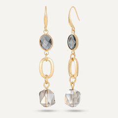 Abstract Grey Crystal Clasp Bracelet In Gold-Tone