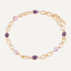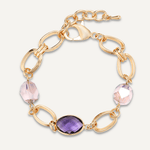 Boasting warm hues of large purple sparkling gemstones on a gold-tone plated clasp bracelet.