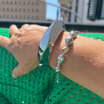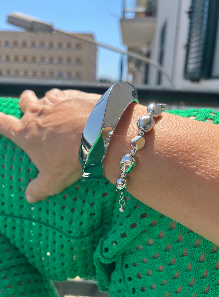 Step into a world of modern sophistication with our Bracelet, finished in sleek rhodium plating. Its contemporary design features an innovative hinge mechanism, making it as functional as it is stylish. The abstract motif captures the essence of modern art, making it a standout addition to any jewelry collection.
