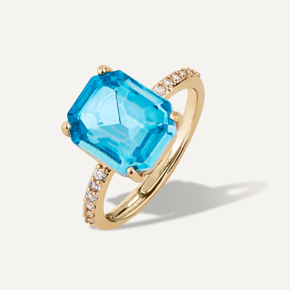 Aqua Blue Crystal & Cubic Zirconia Ring In Gold-Tone