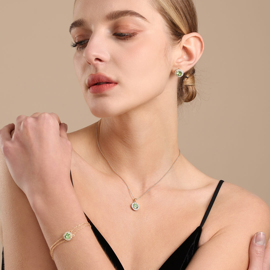August Peridot-Colour Birthstone Necklace & Earring Set In Gold-Tone