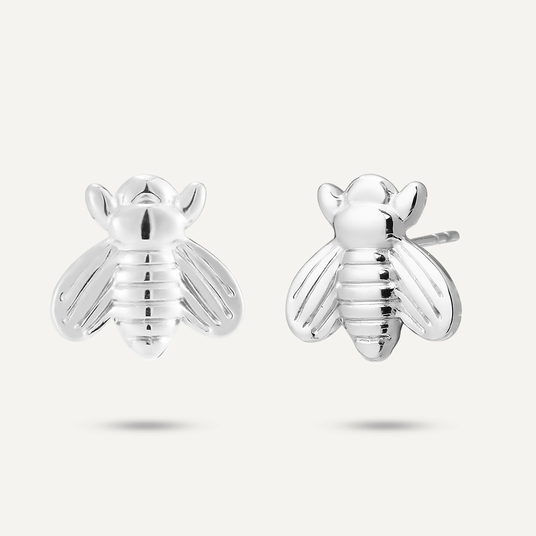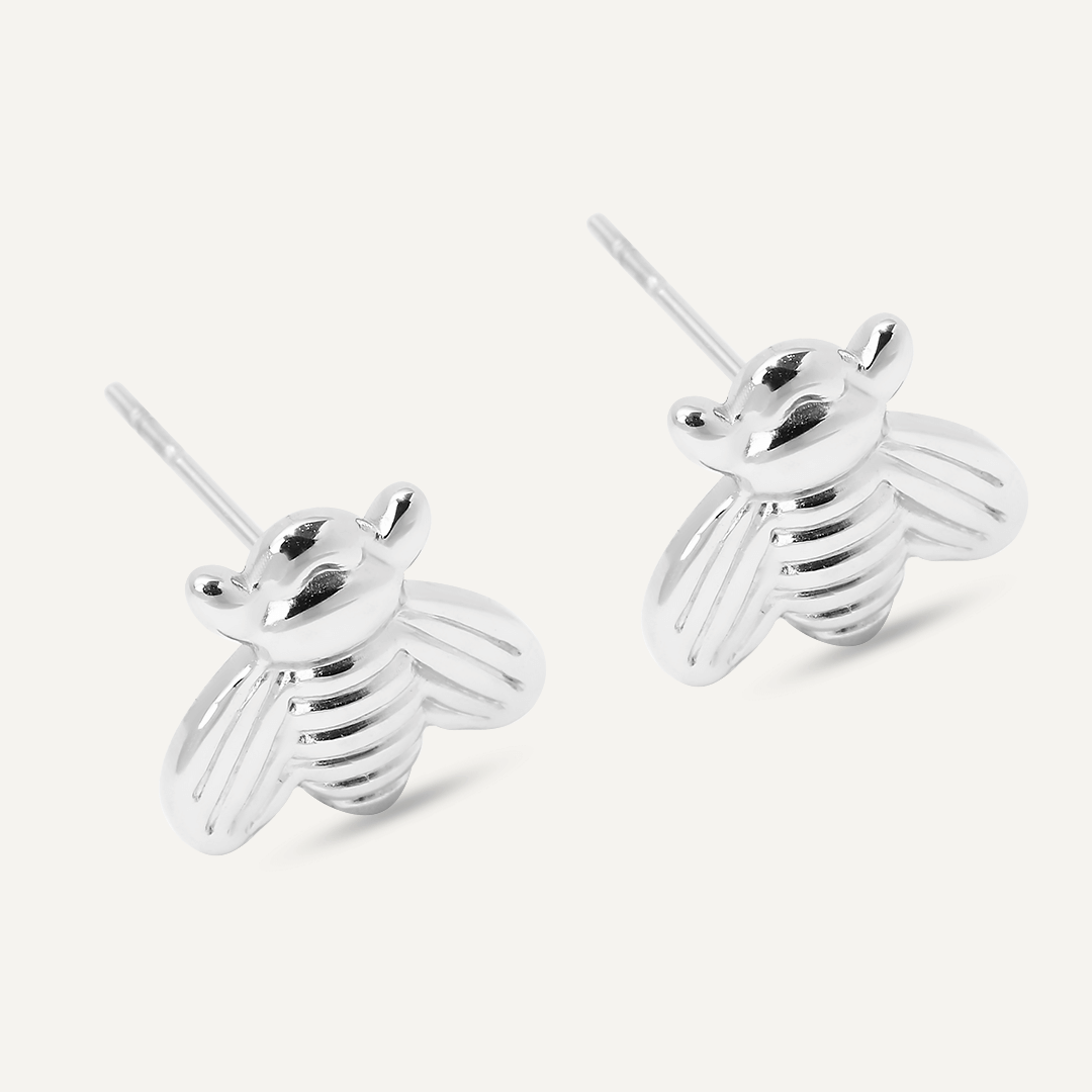 Bee Stud Earrings In Silver-Tone