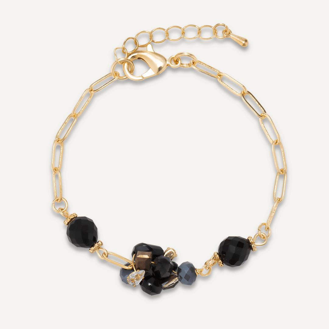 Black Crystal Cluster Clasp Bracelet In Gold-Tone