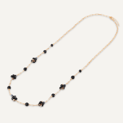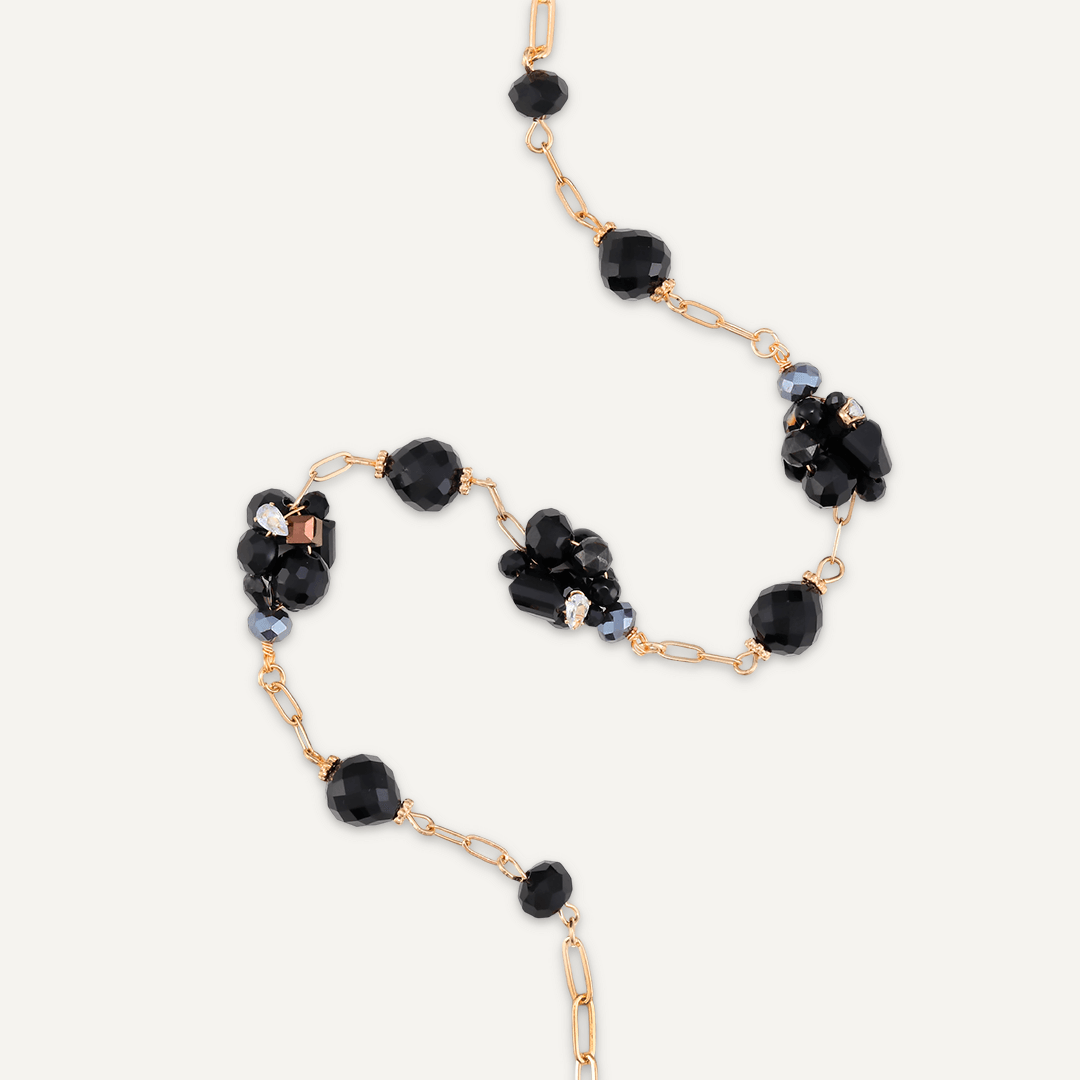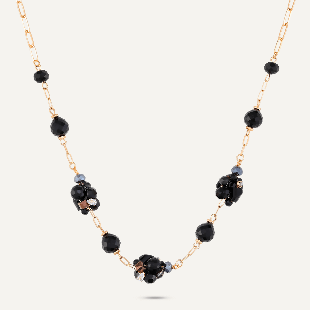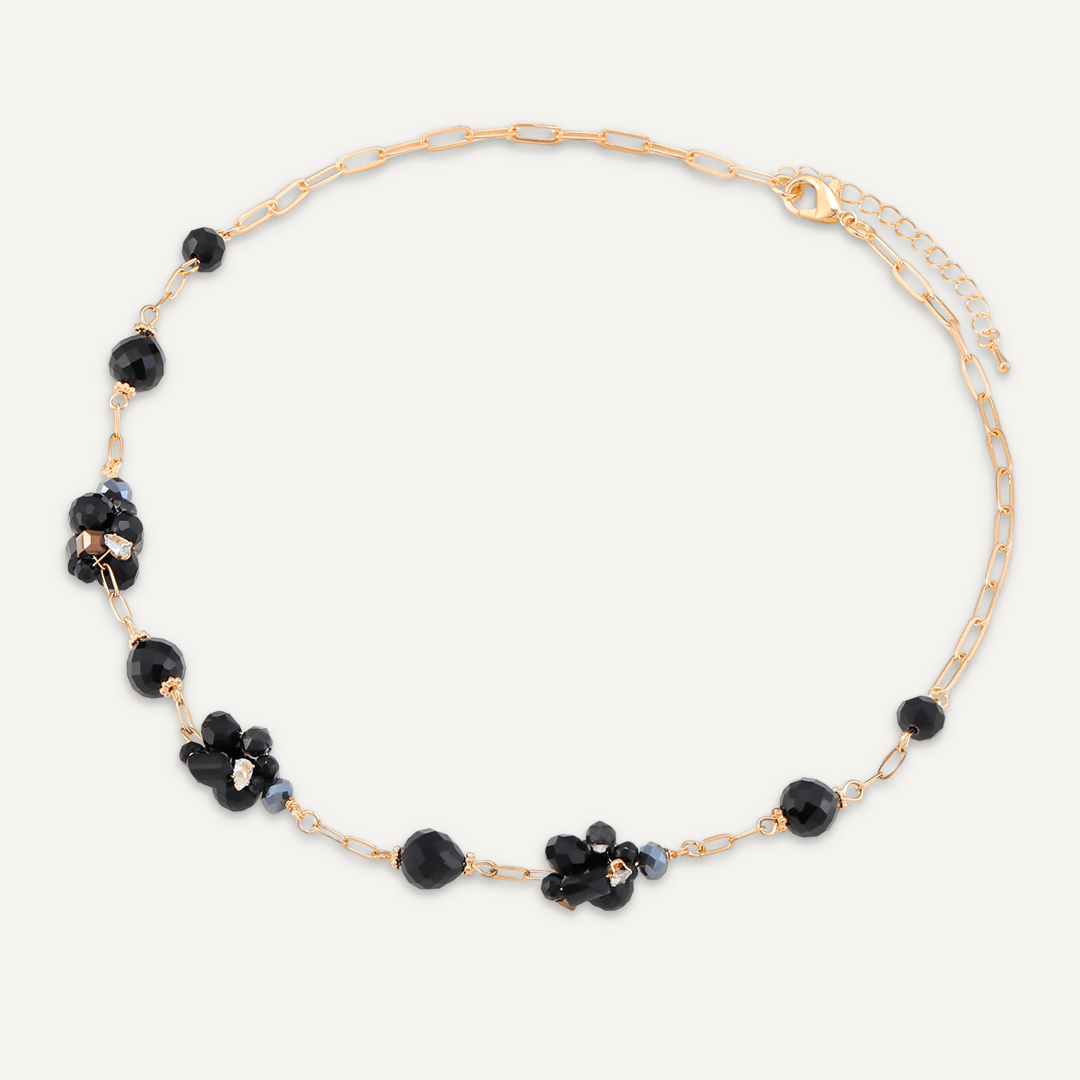 This short necklace features clusters of black crystals on a delicate gold-tone chain.