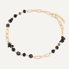 Black Semi-Precious Stone & Crystal Clasp Bracelet In Gold-Tone