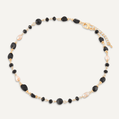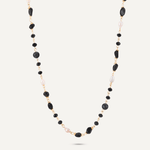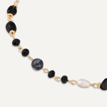 Black Semi-Precious Stone, Crystal & Fresh Water Pearls Long Necklace In Gold-Tone