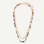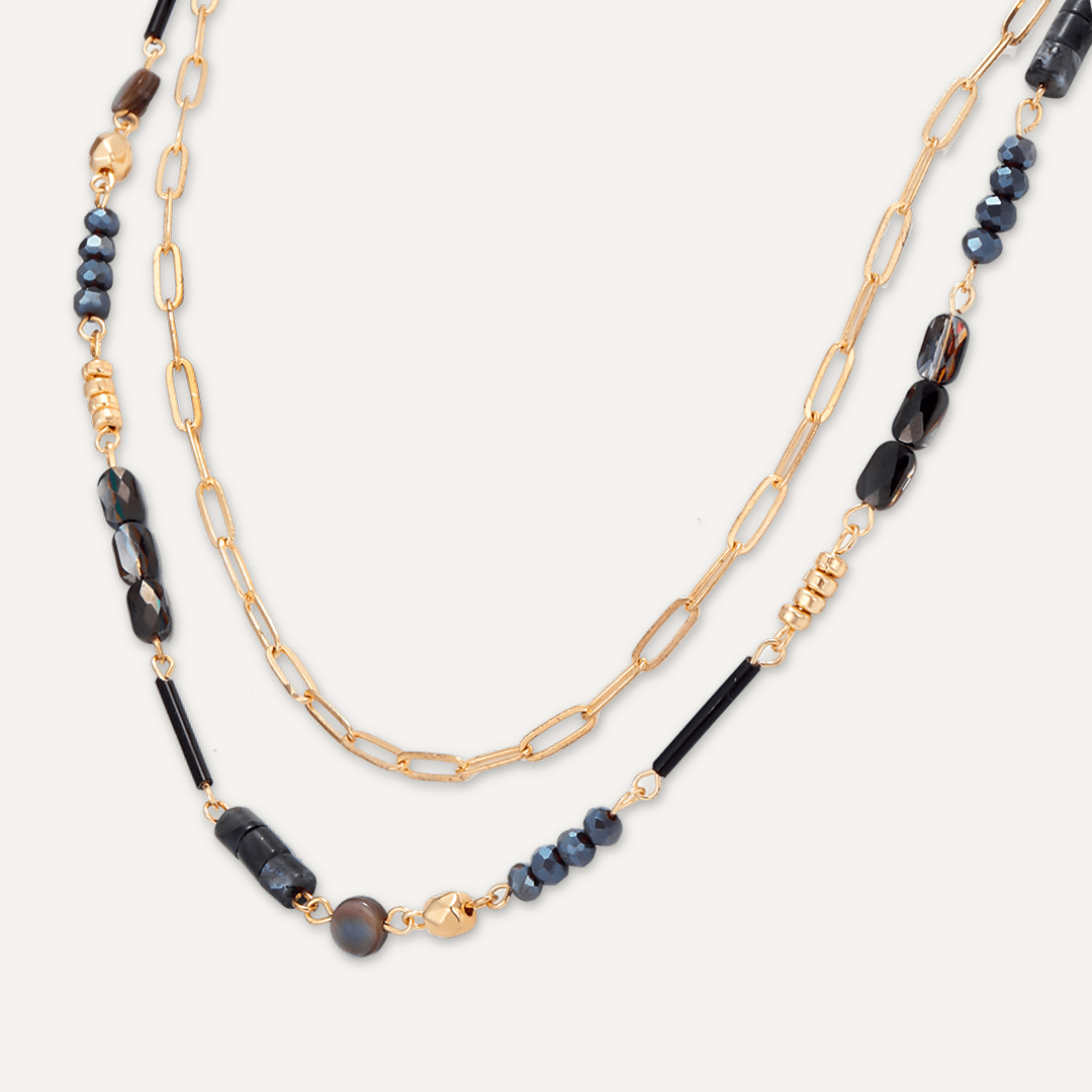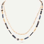 Black Semi-Precious Stone Long Necklace In Gold-Tone