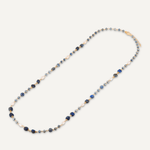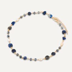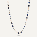 Blue Semi-Precious Stone, Crystal & Fresh Water Pearls Long Necklace In Gold-Tone