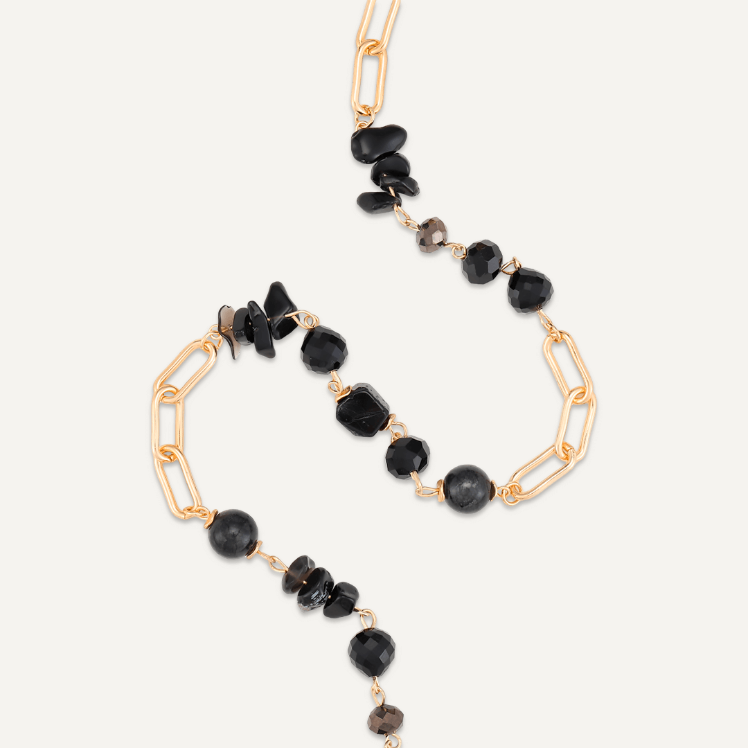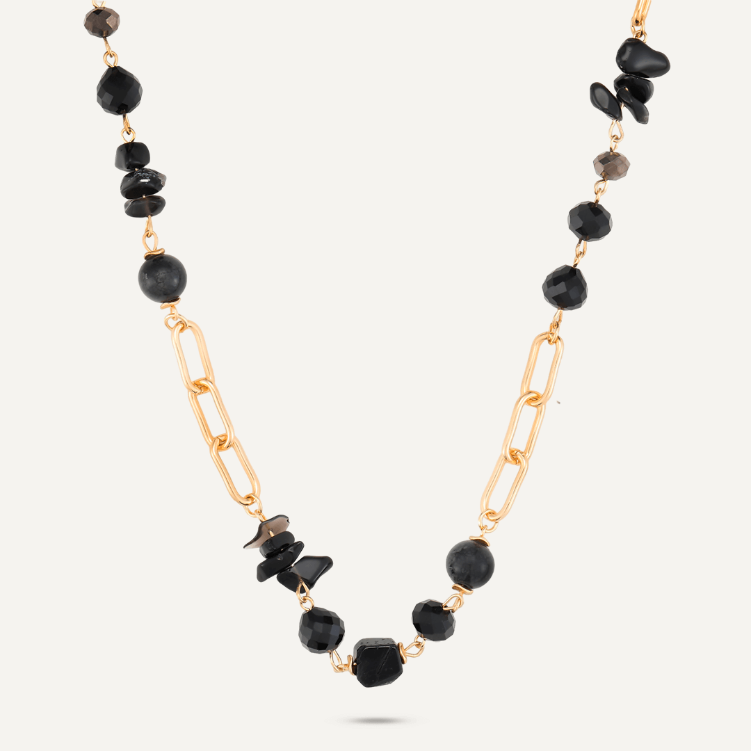 Chain Link Black Semi-Precious Stone & Crystal Short Necklace In Gold-Tone