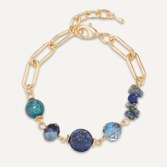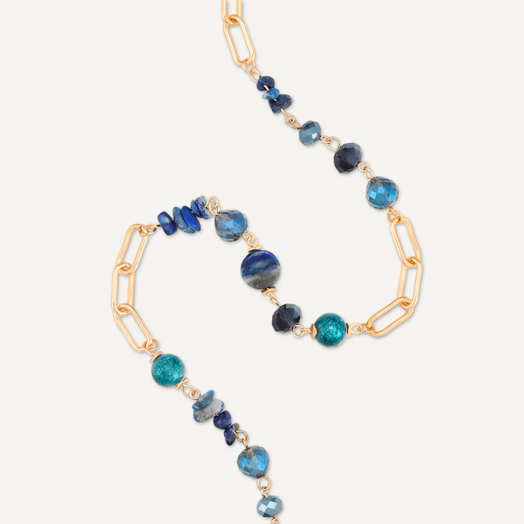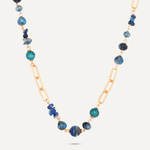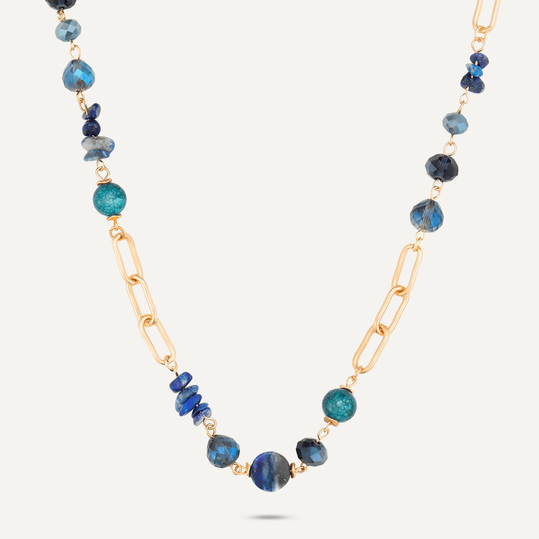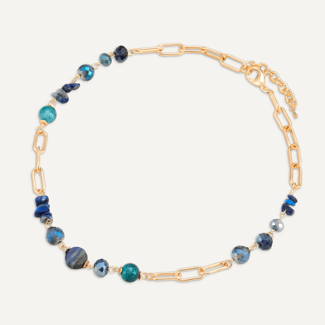 Chain Link Blue Semi-Precious Stone & Crystal Short Necklace In Gold-Tone