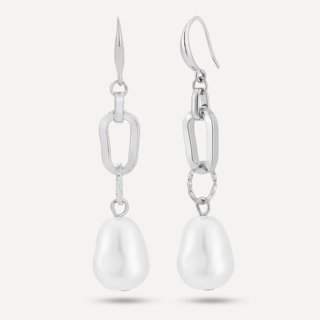 Chain-Link Faux Pearl Drop Earrings In Silver-Tone