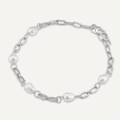 Faux Pearl Chain-Link Short Necklace In Silver-Tone