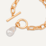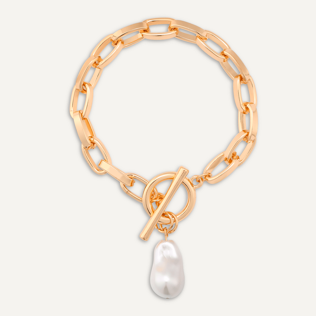 This chain-link bracelet is an elegant addition to your jewellery box, combining classy gold and pearl.