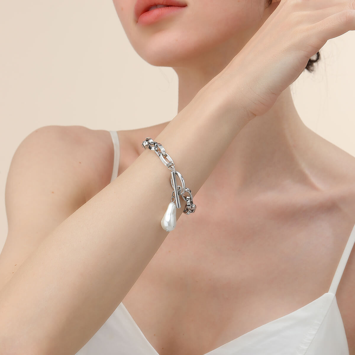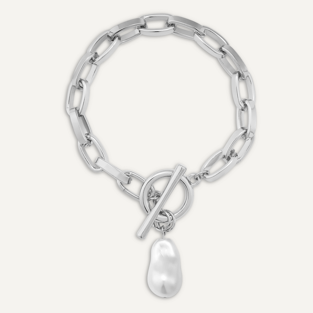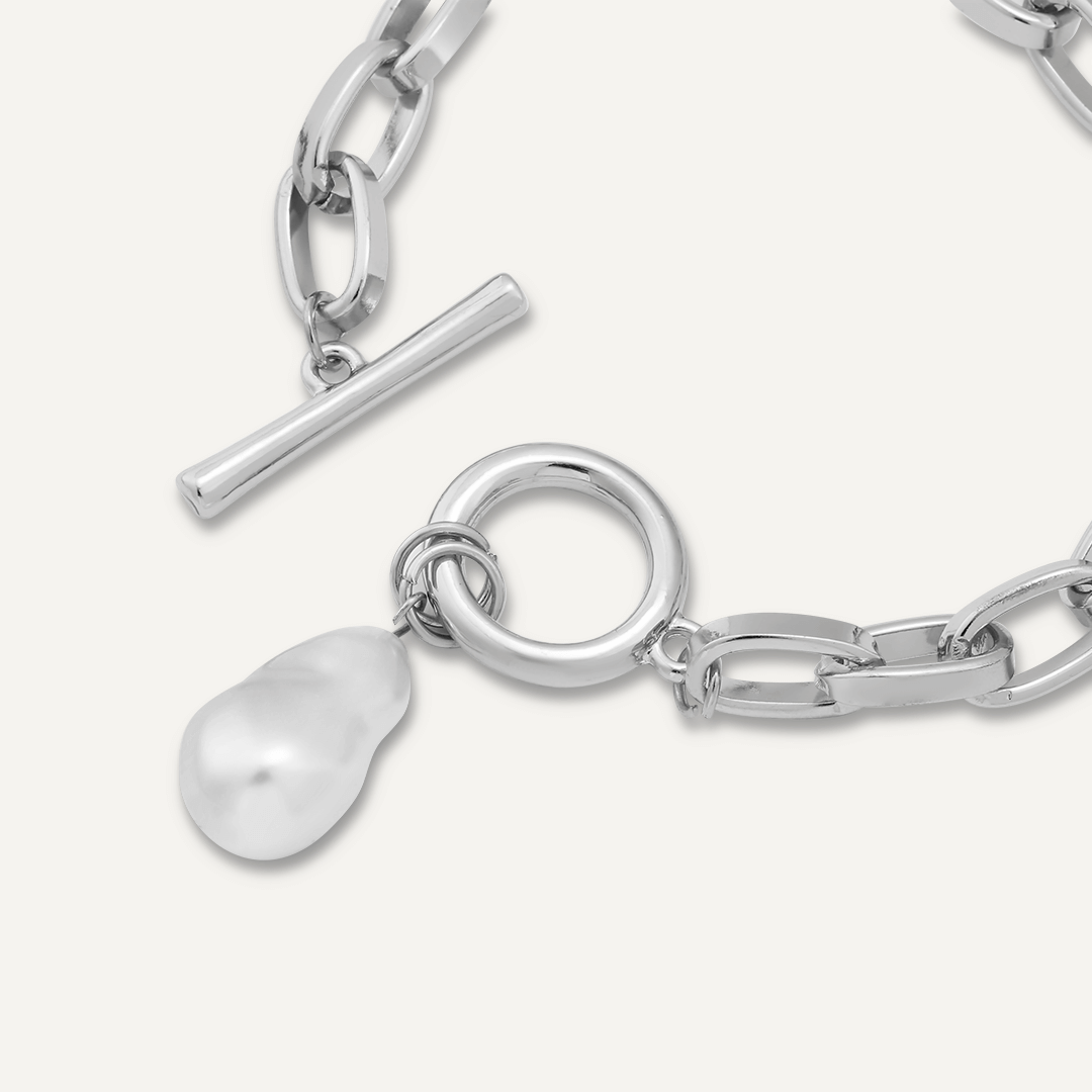 This chain-link bracelet is an elegant addition to your jewellery box, combining classy rhodium and pearl.