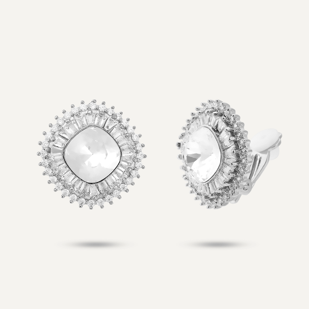 Circular Crystal & Cubic Zirconia Clip On Earrings In Silver-Tone