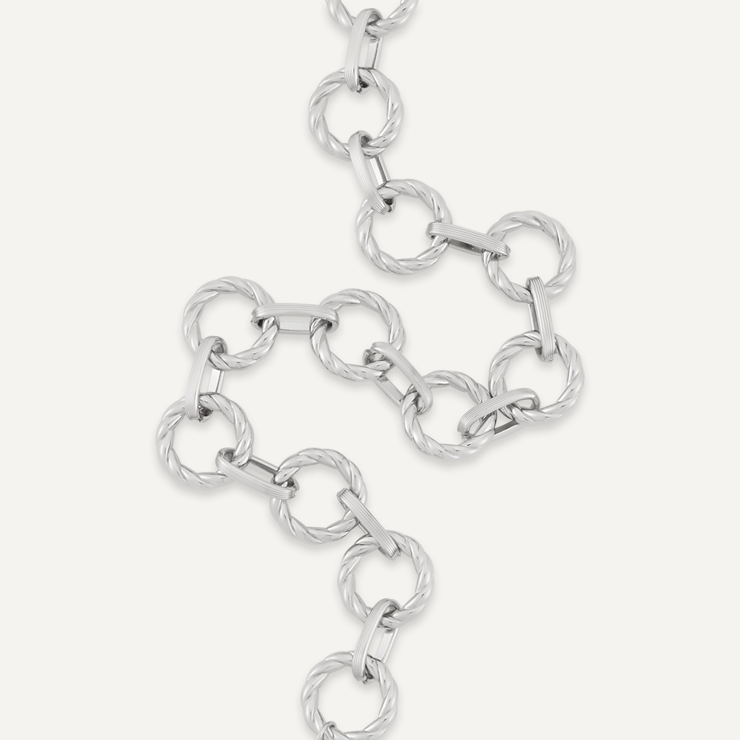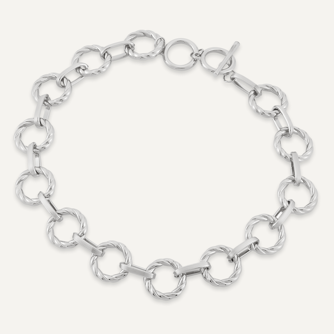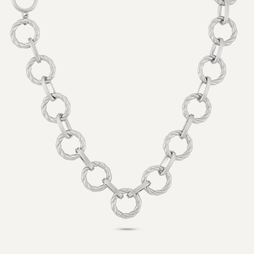 Blend tradition with trend in our Necklace, featuring rhodium plating in a chic chain-link design. Its T-bar clasp adds a touch of classic elegance, making it a versatile piece for both casual and formal occasions.