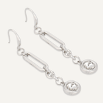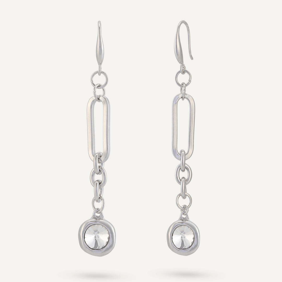Discover the sparkling beauty of these Earrings, adorned with a delicate hook and chain-link in elegant silver-tone plating. These earrings capture the light with every movement, offering a radiant addition to your ensemble. Perfect for adding a touch of glamour to any occasion.
