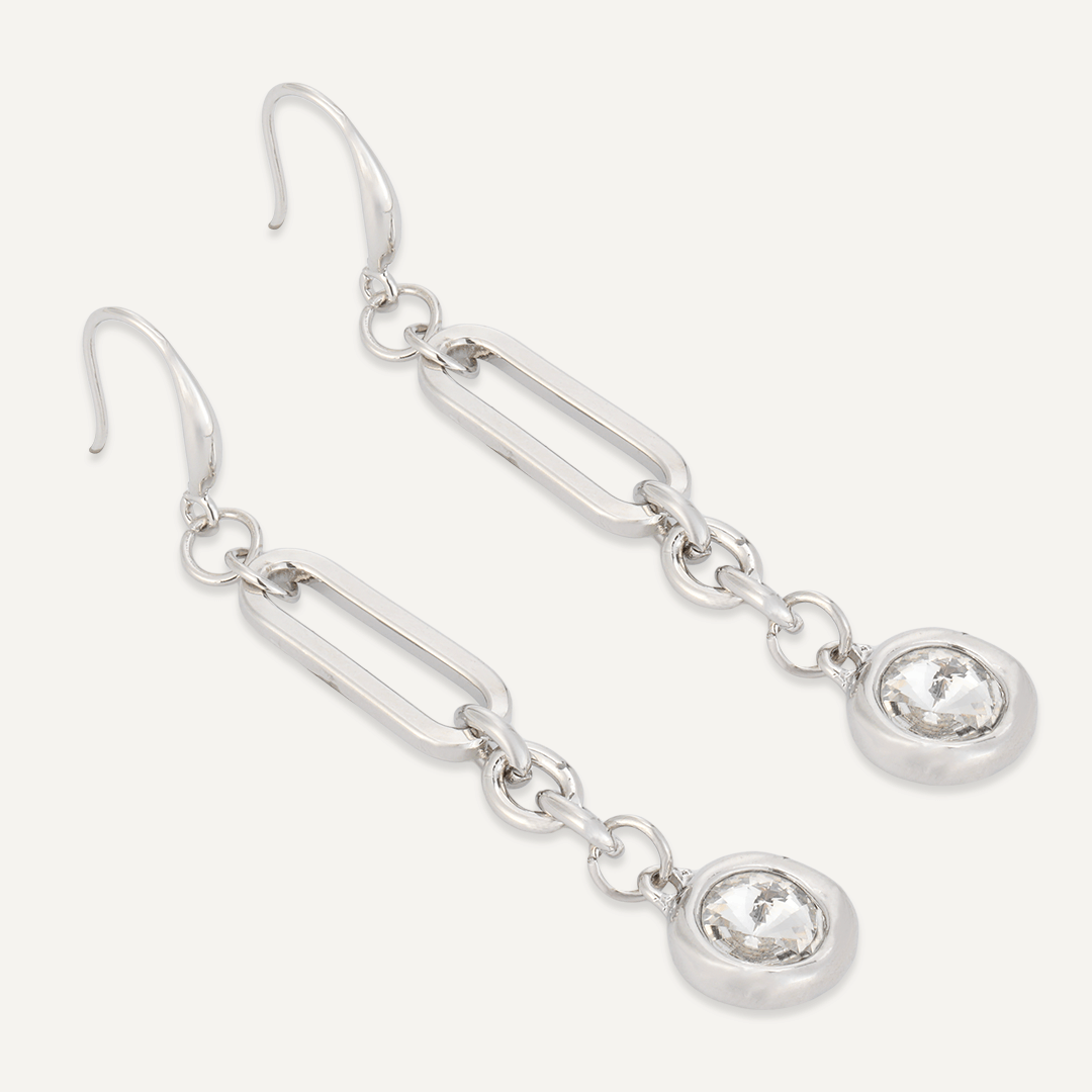 Contemporary Crystal Chain-Link Hook Earrings In Silver-Tone
