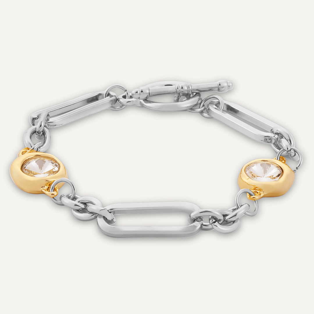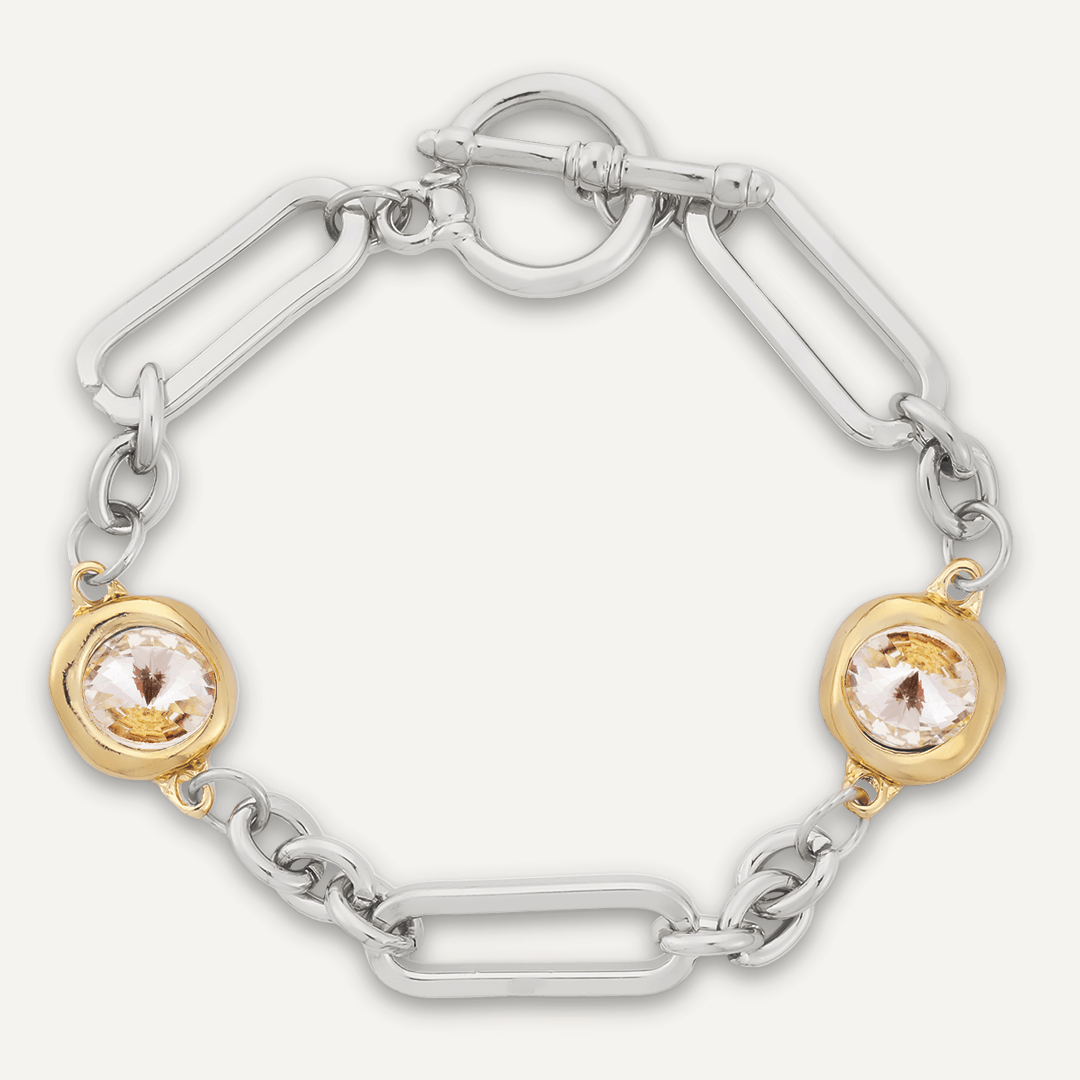 Contemporary Crystal T-Bar Chain-Link Bracelet In Gold & Silver-Tone