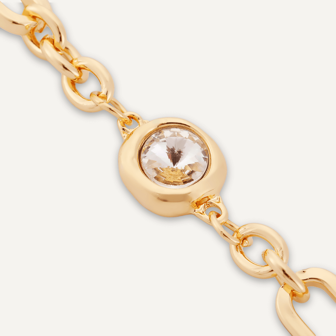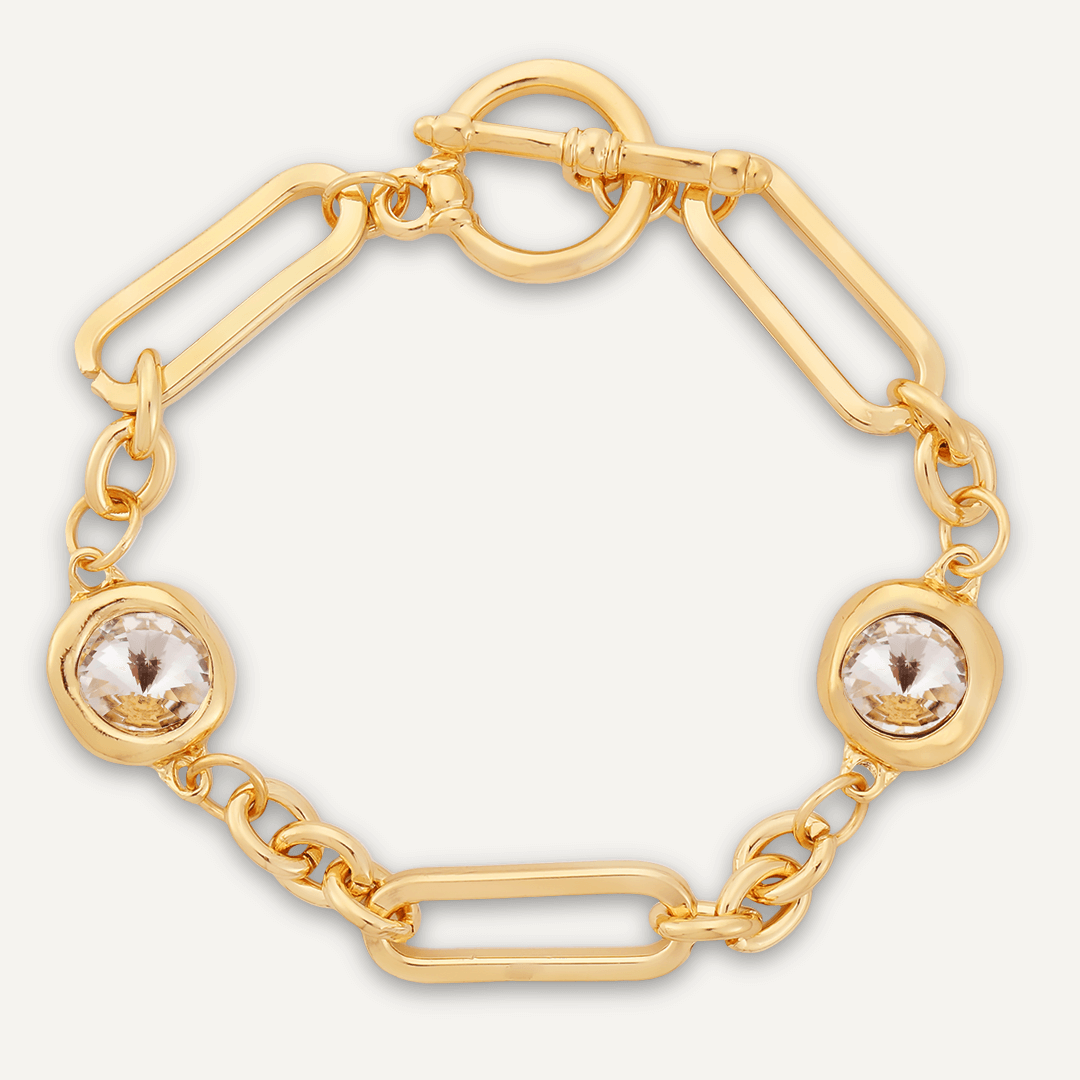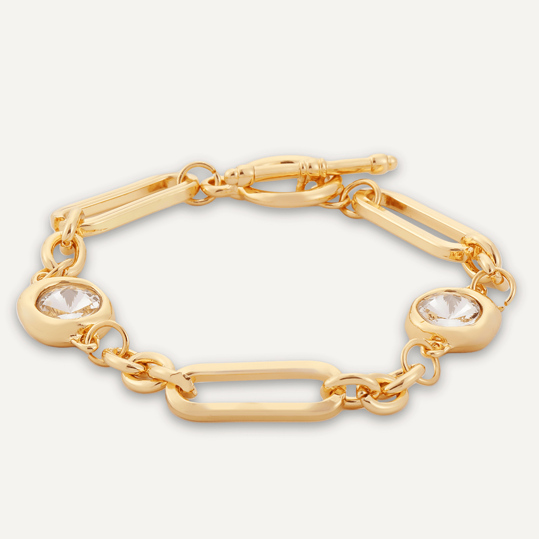 Contemporary Crystal T-Bar Chain-Link Bracelet In Gold-Tone