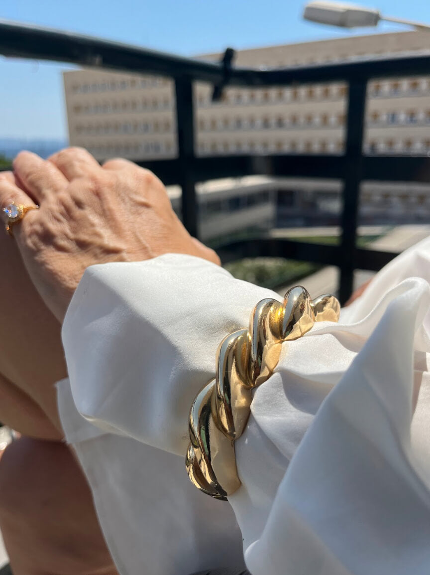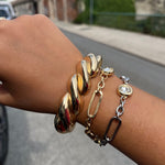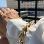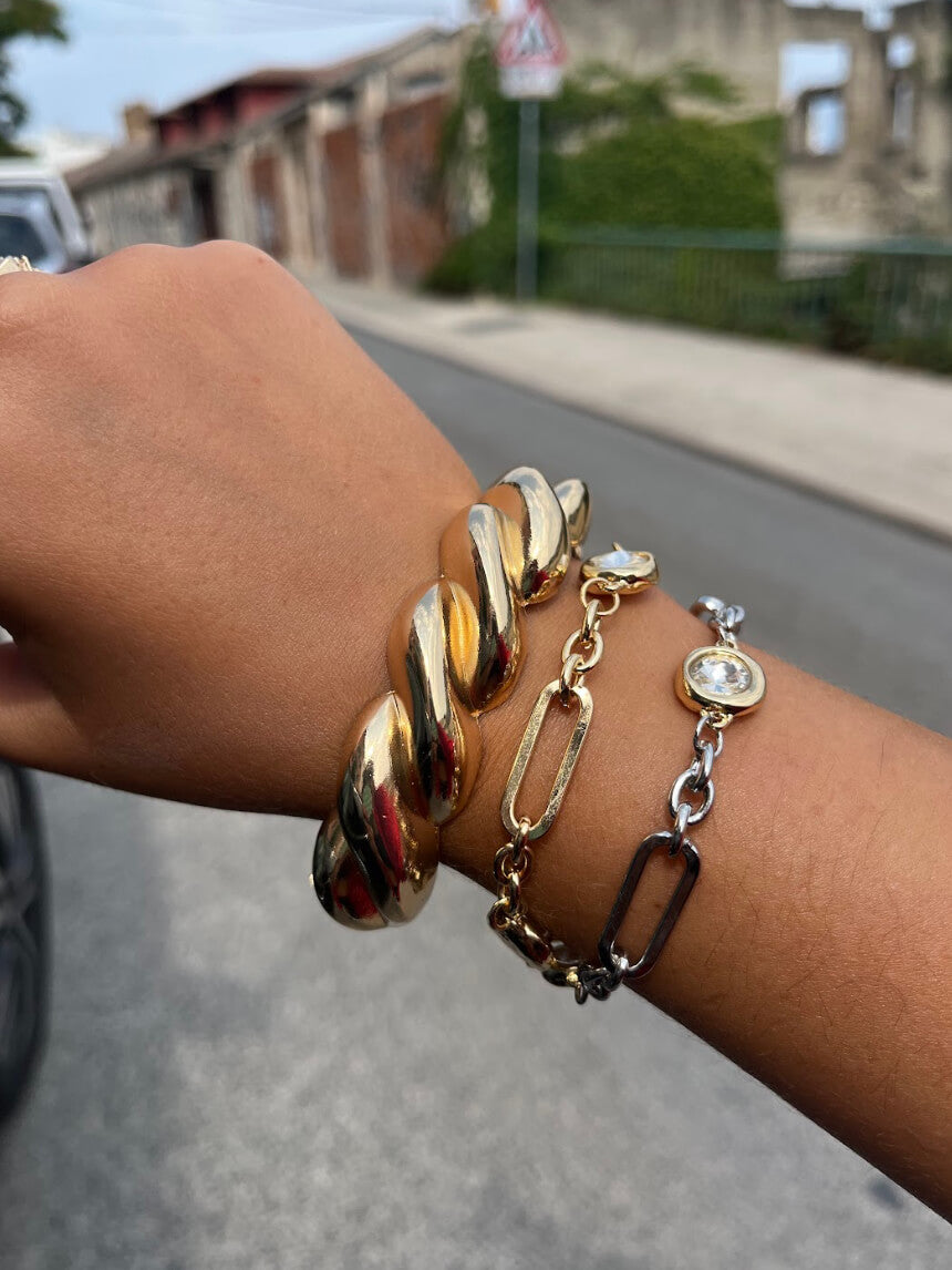 Illuminate your style with this Abstract gold-tone bracelet. Perfectly complemented by a hinged clasp.