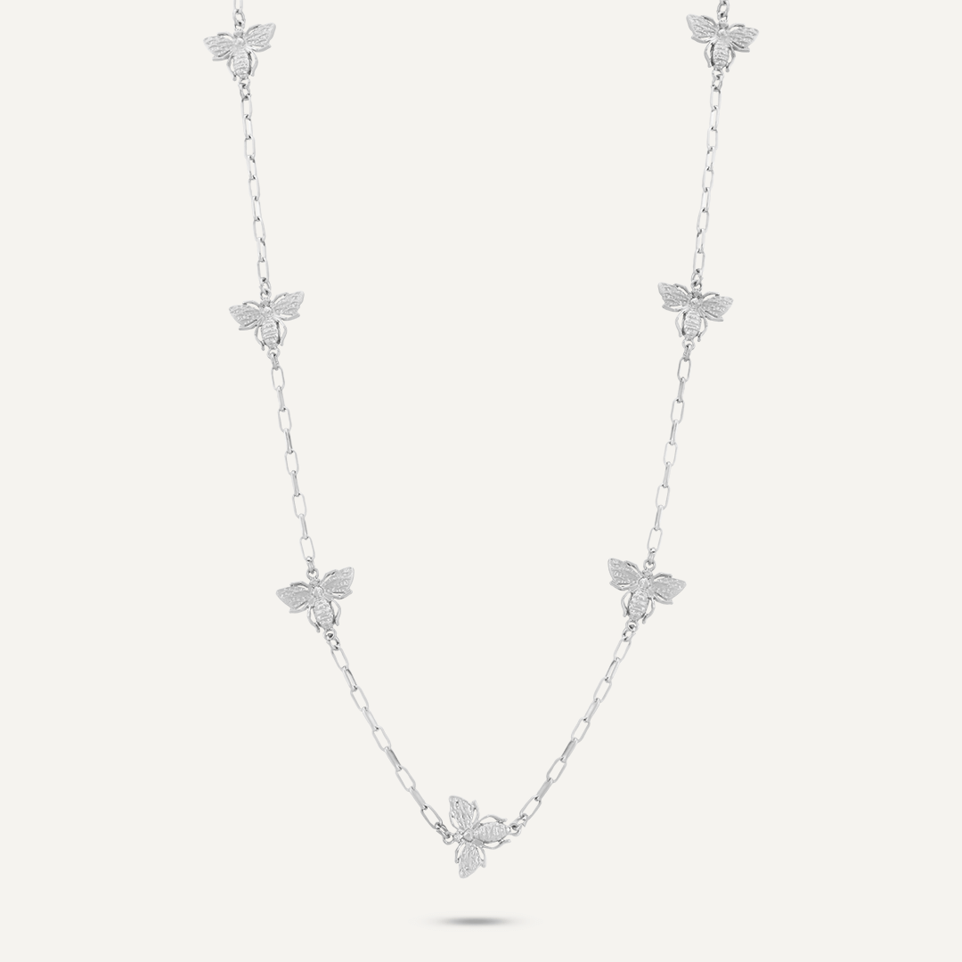 Contemporary T-Bar Bee Long Necklace In Silver-Tone