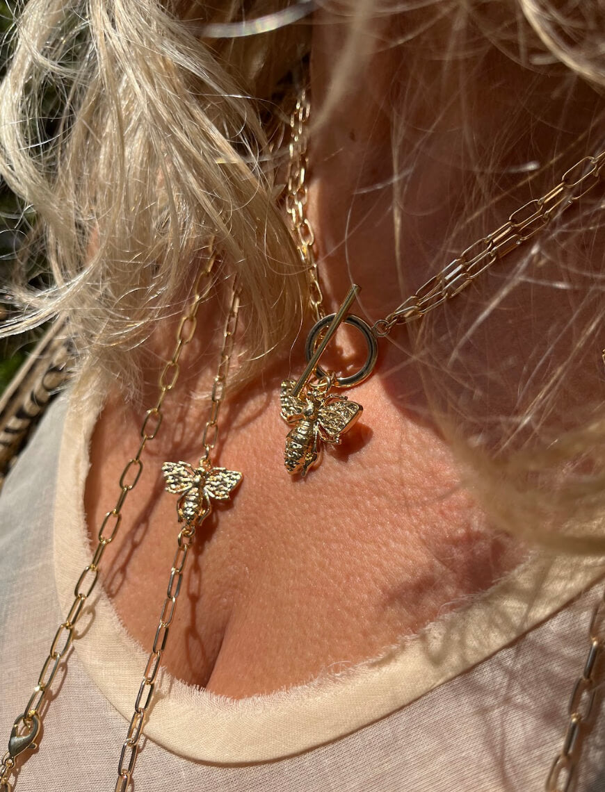 Contemporary T-Bar Bee Necklace In Gold-Tone