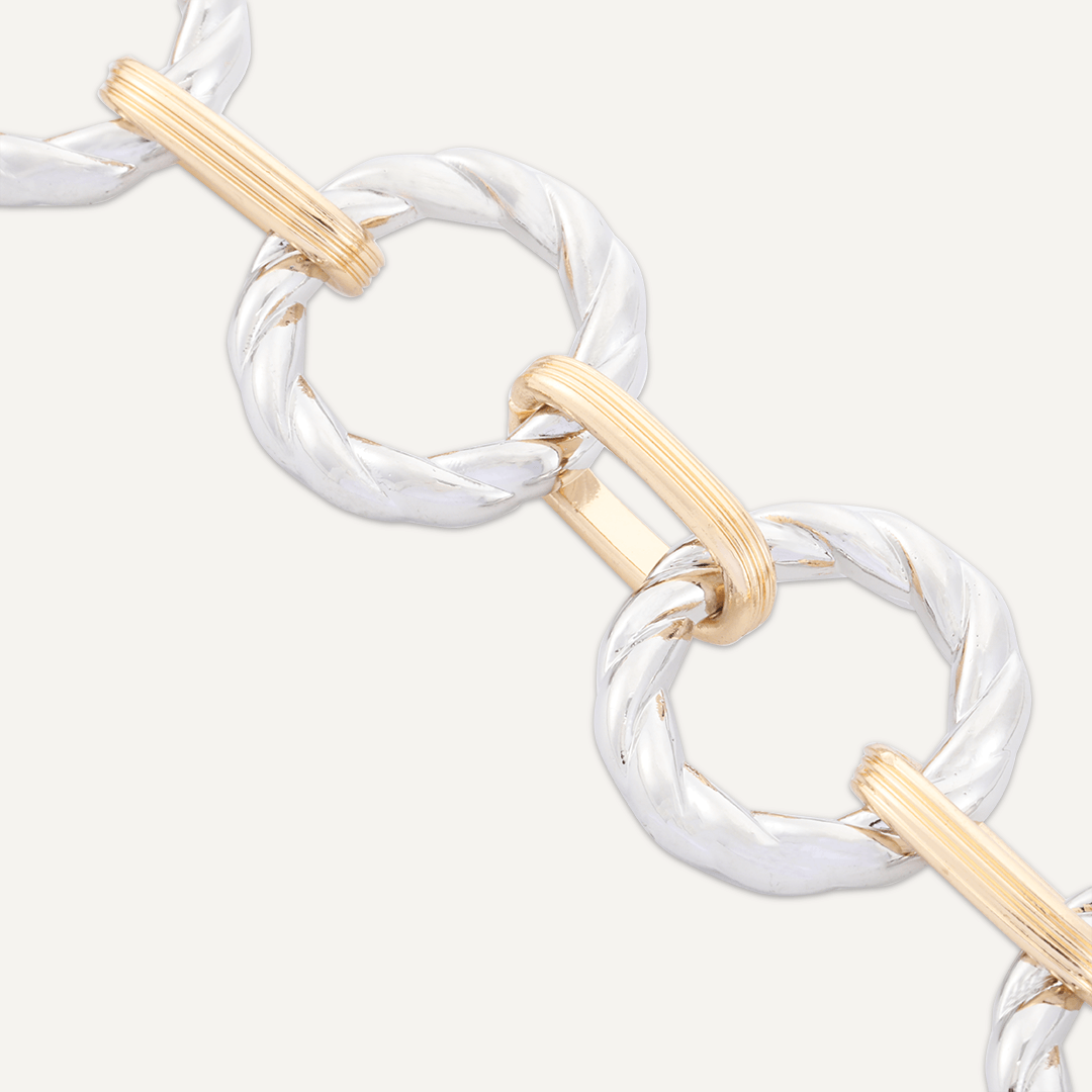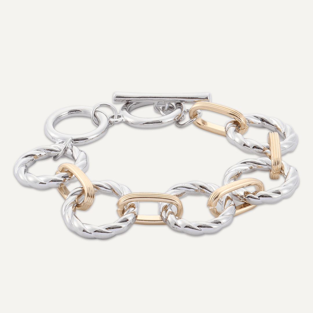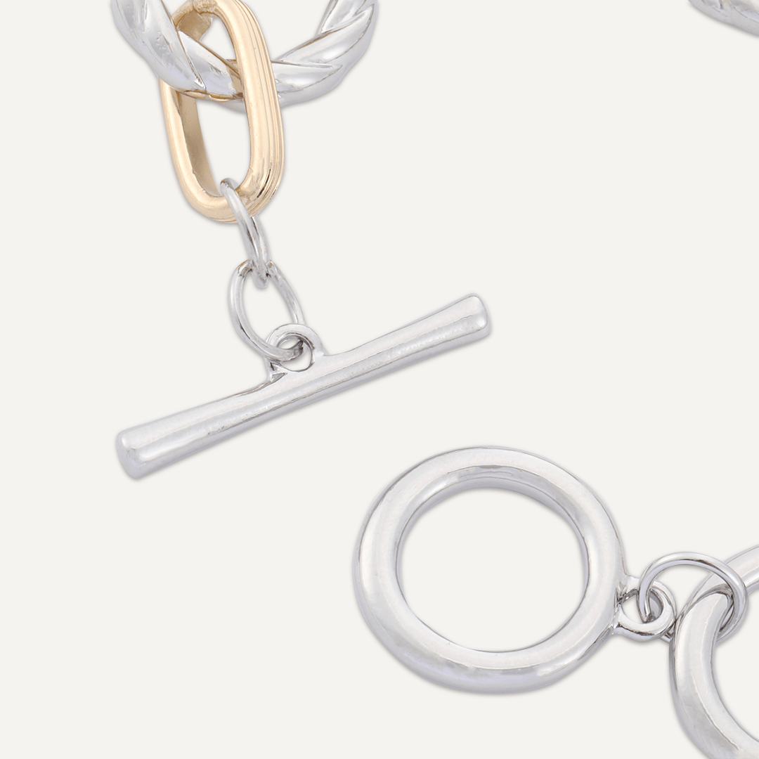 Contemporary T-Bar Chain-Link Bracelet In Silver & Gold-Tone