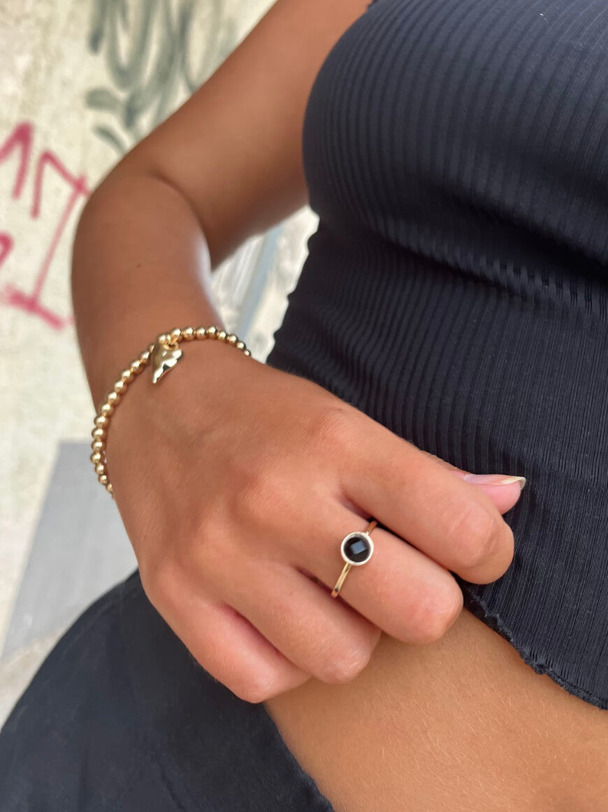 Our simple and elegant natural stone ring features a minimalistic Black Spinel stone set in gold.