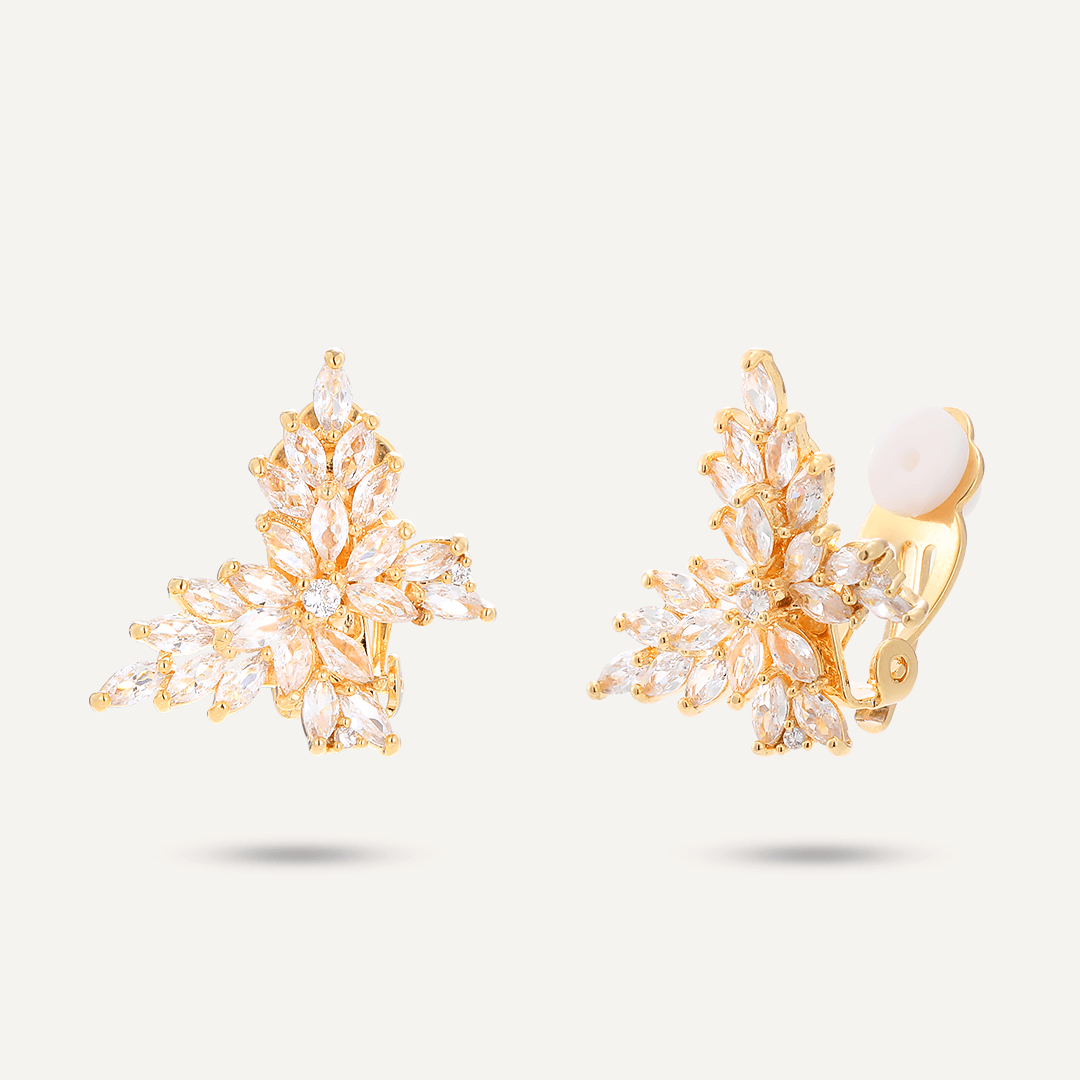 Cubic Zirconia Clip On Earrings In Gold-Tone