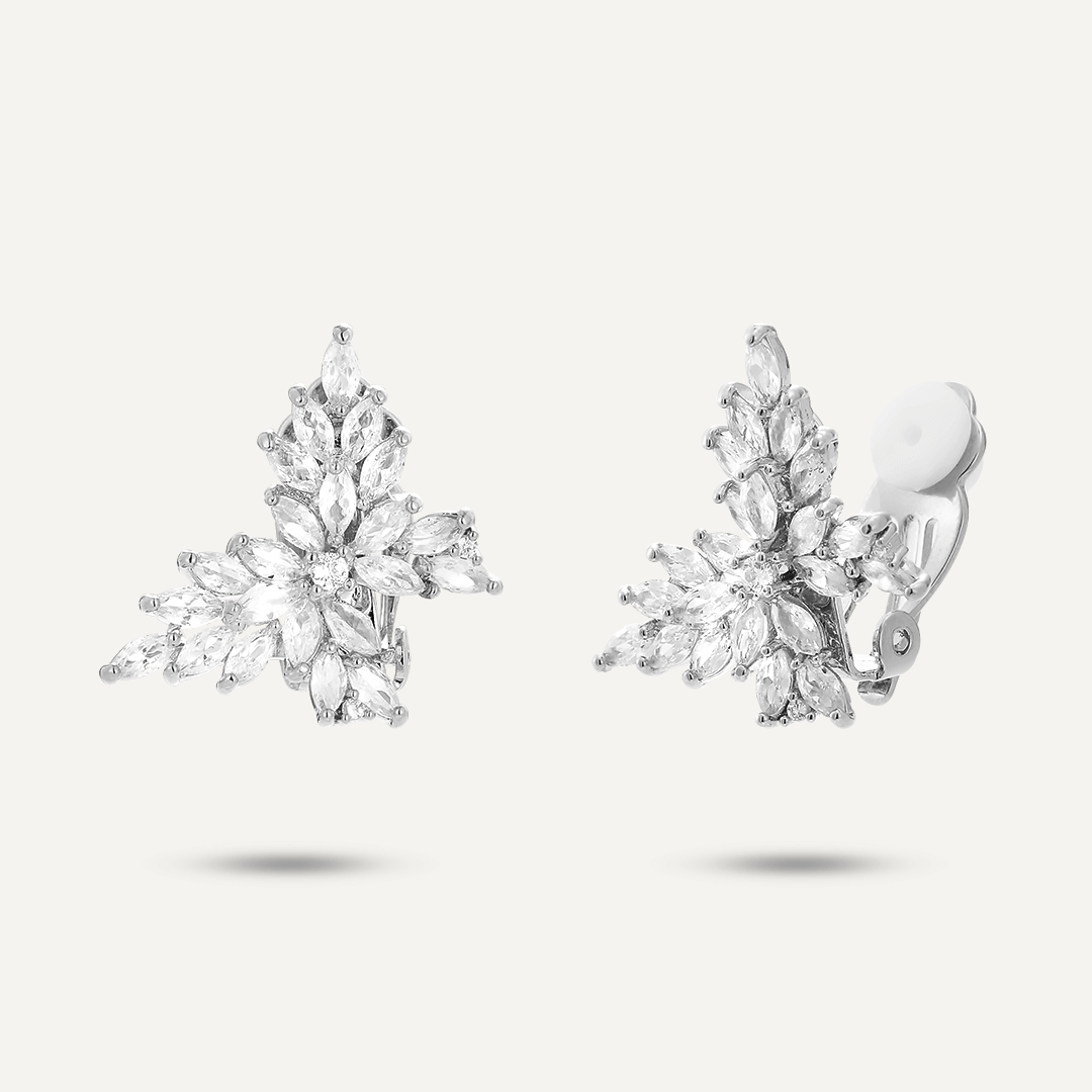 Cubic Zirconia Clip On Earrings In Silver-Tone