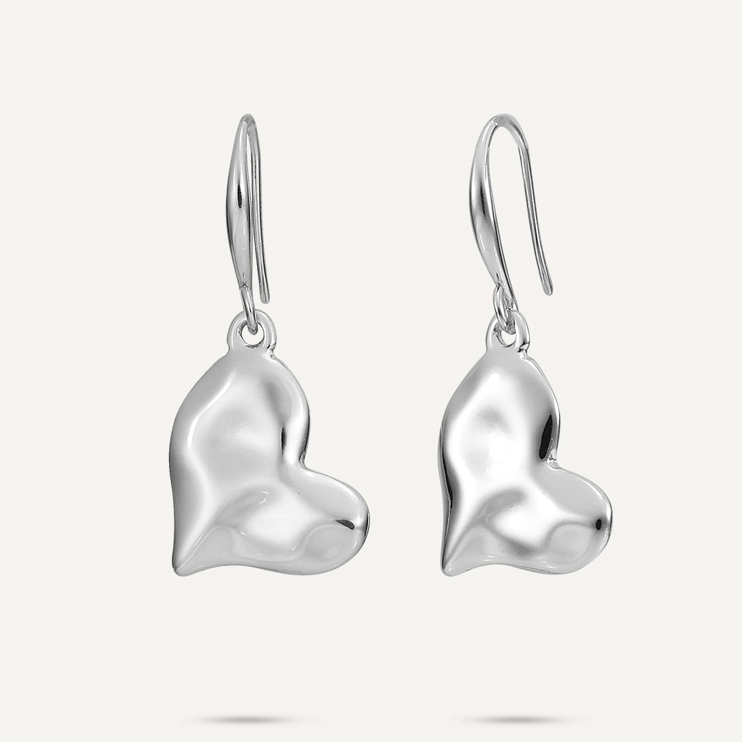 Drop Heart Earrings In Silver-Tone