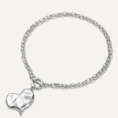 Heart Charm Chain Necklace In Silver-Tone