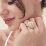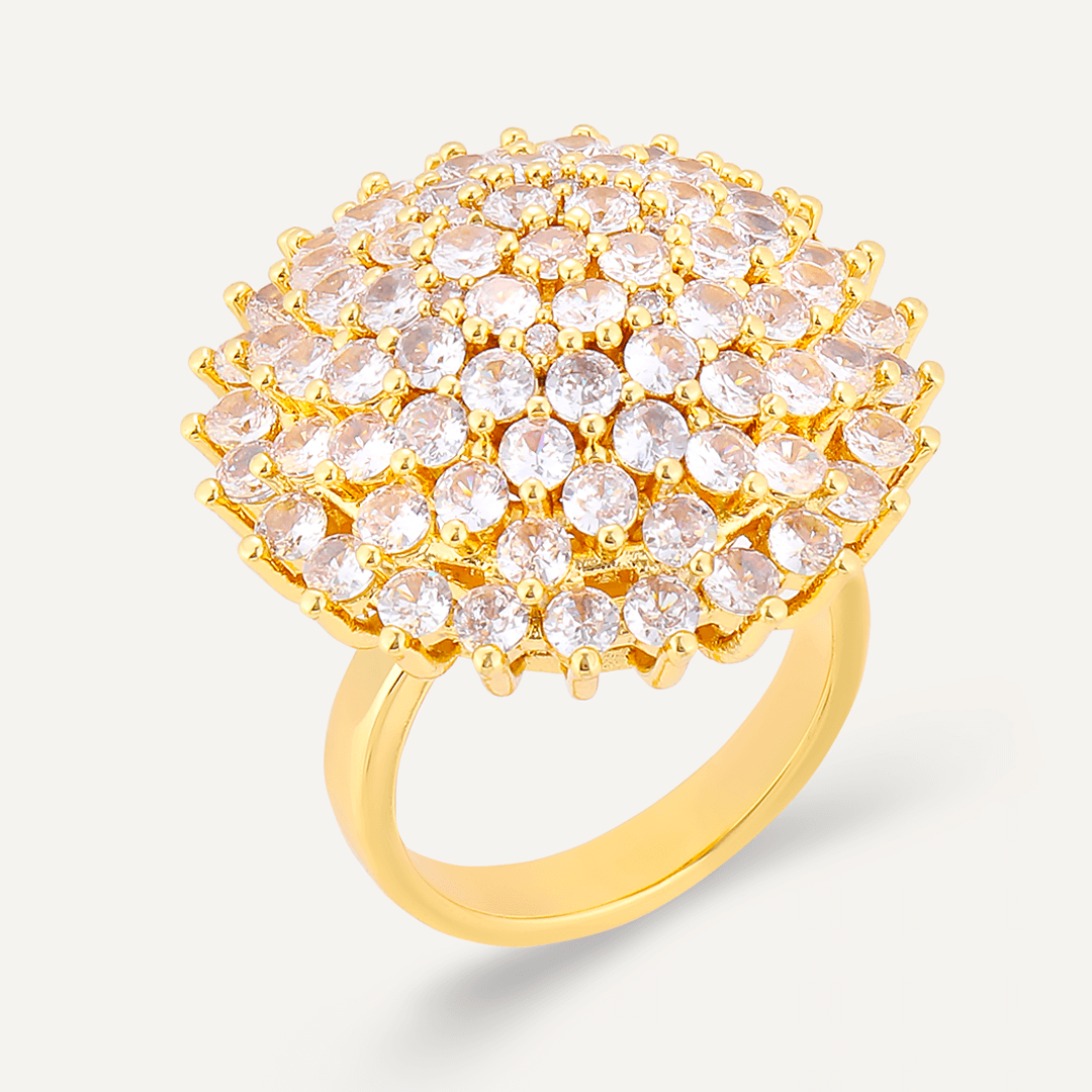 Elizabeth Floral Cubic Zirconia Adjustable Ring In Gold-Tone