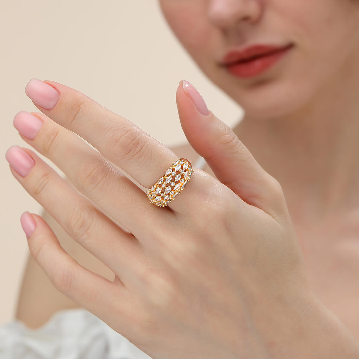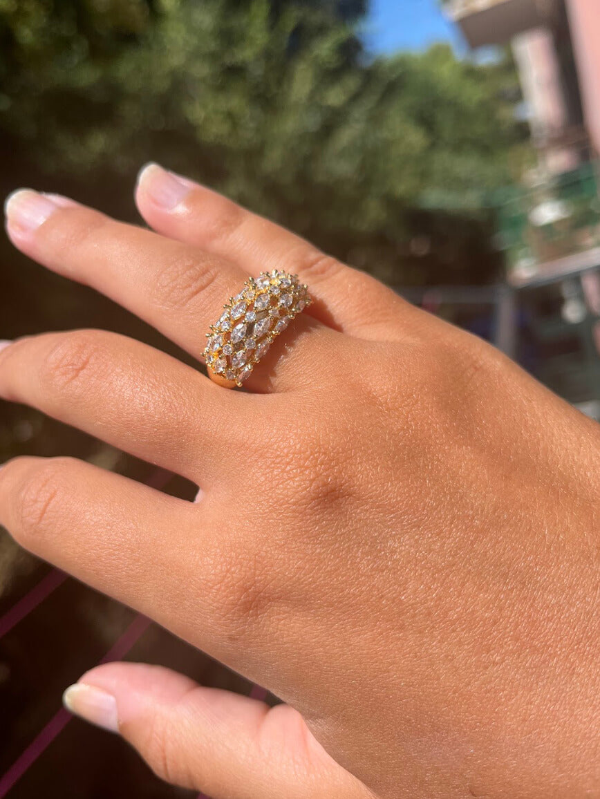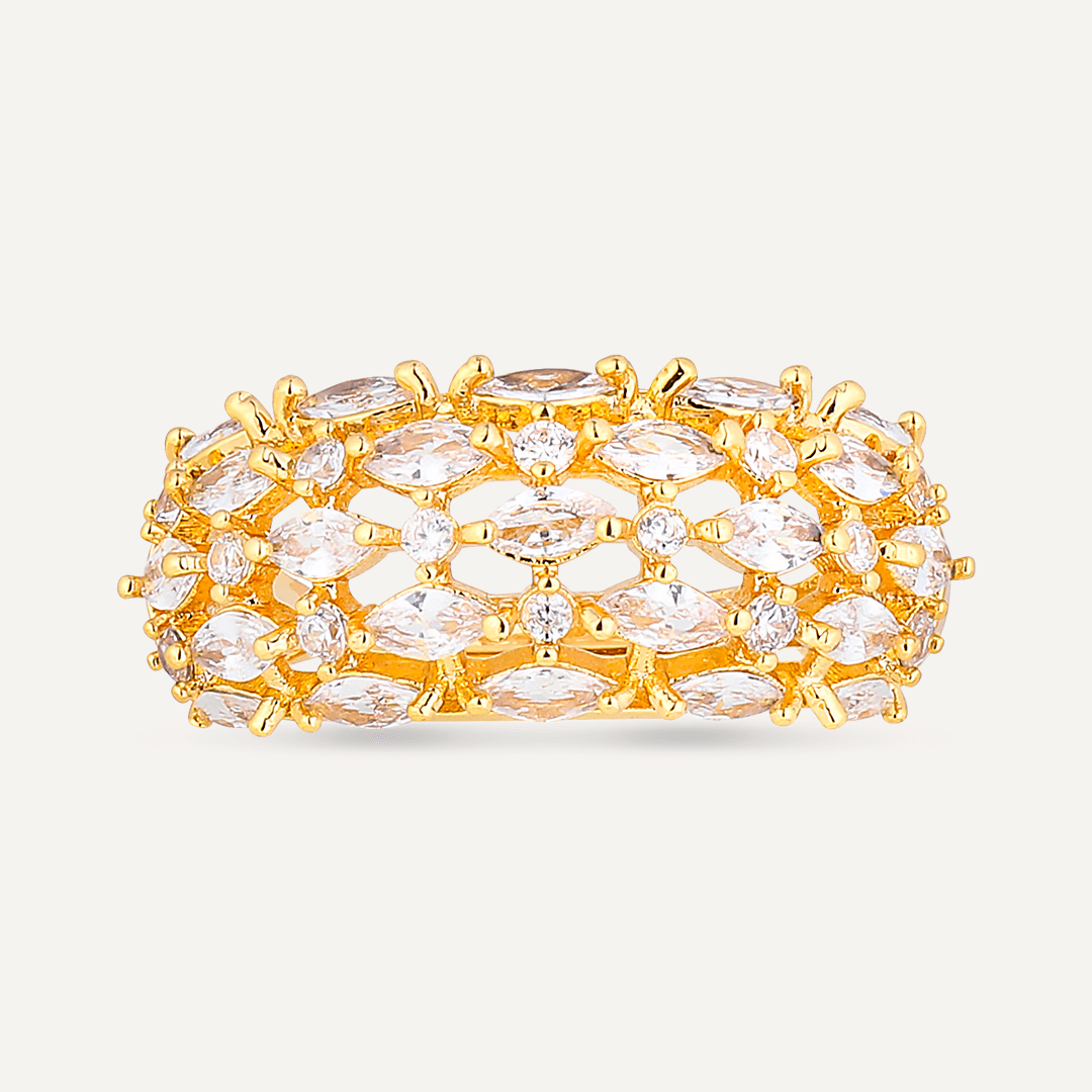 Elizabeth Statement Cubic Zirconia Adjustable Ring In Gold-Tone