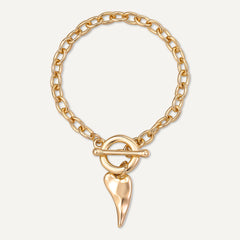 Heart Tusk Charm T-Bar Bracelet In Gold-Tone