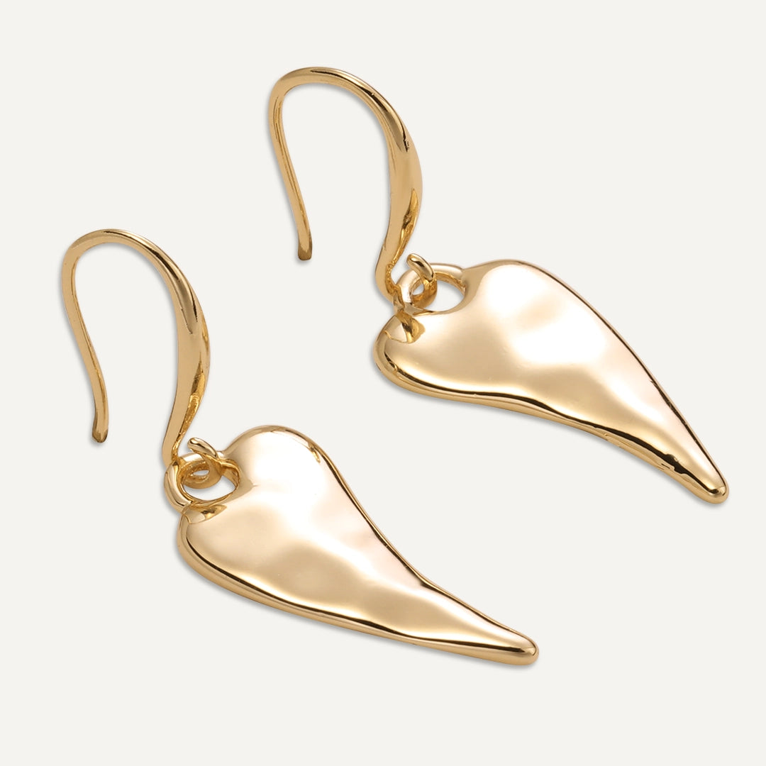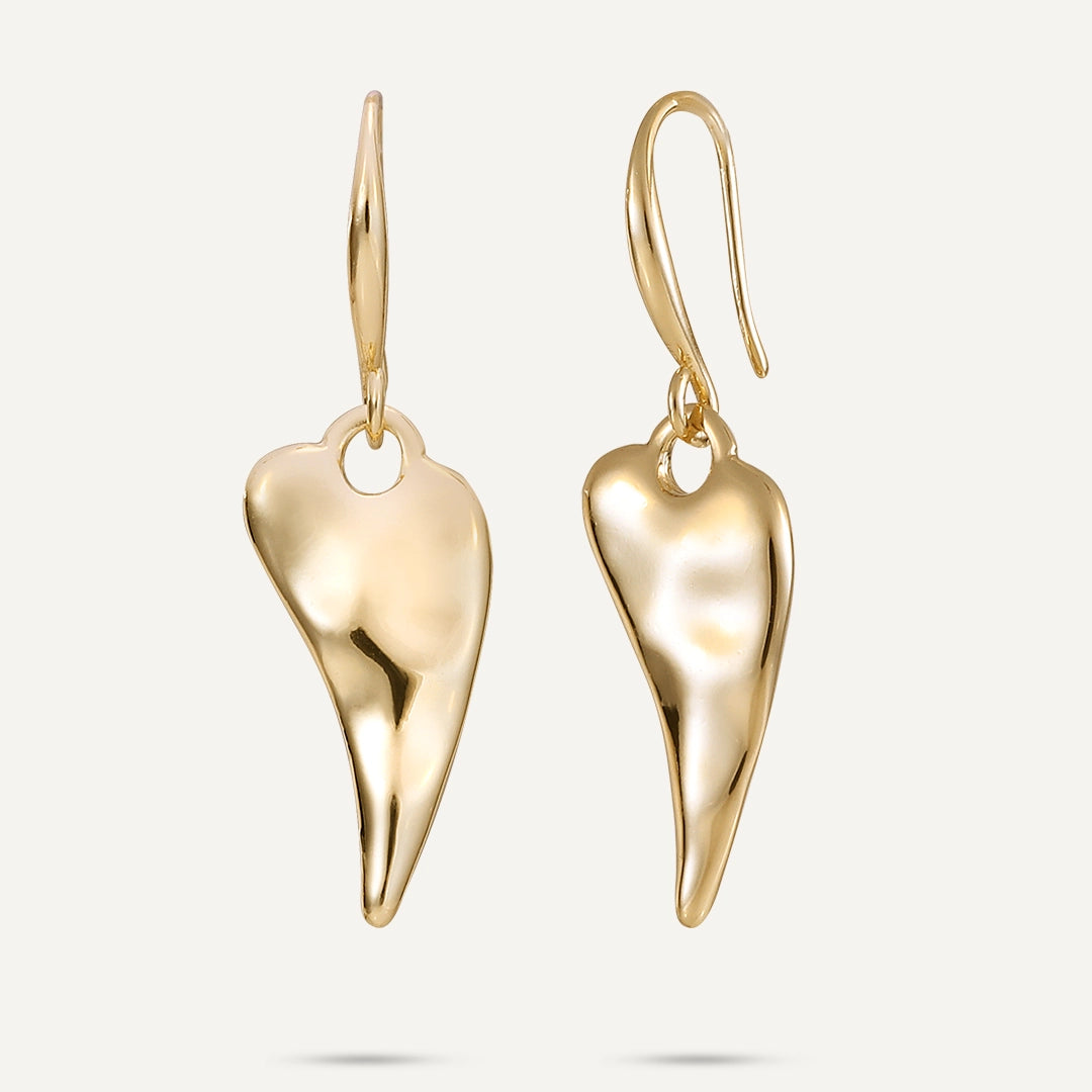 Elevate your style with these striking elongated heart drop earrings, crafted in a radiant gold-tone finish. Featuring a sleek and modern design, the asymmetric hearts dangle gracefully from delicate hooks, adding a touch of elegance and sophistication to any outfit.