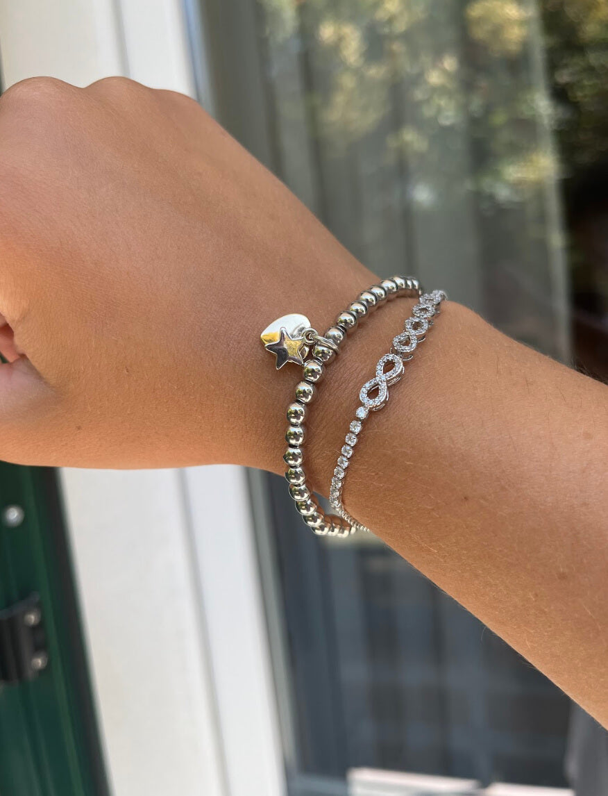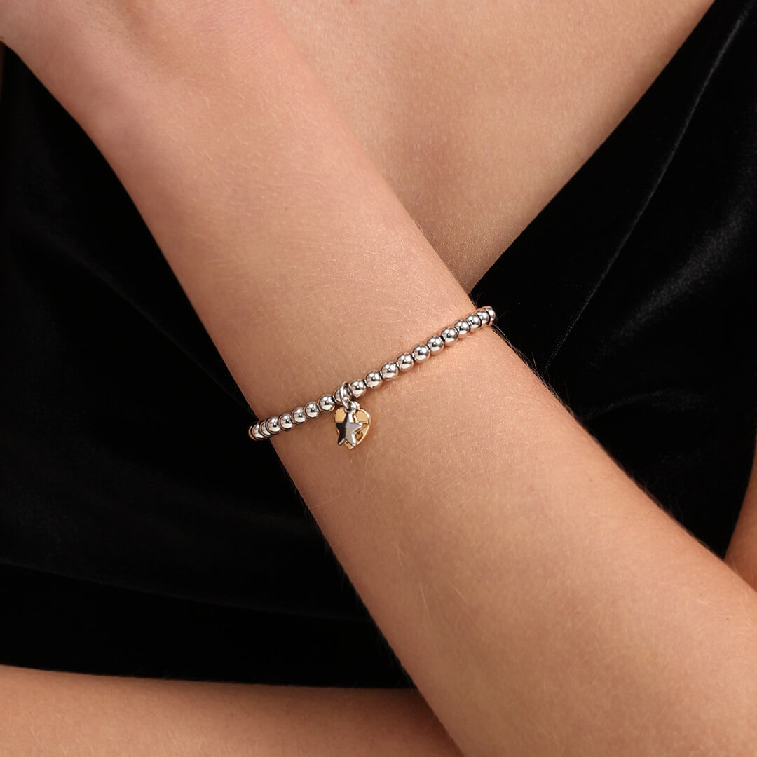 Emily Heart and Star Elasticated Bracelet In Silver & Gold-Tone