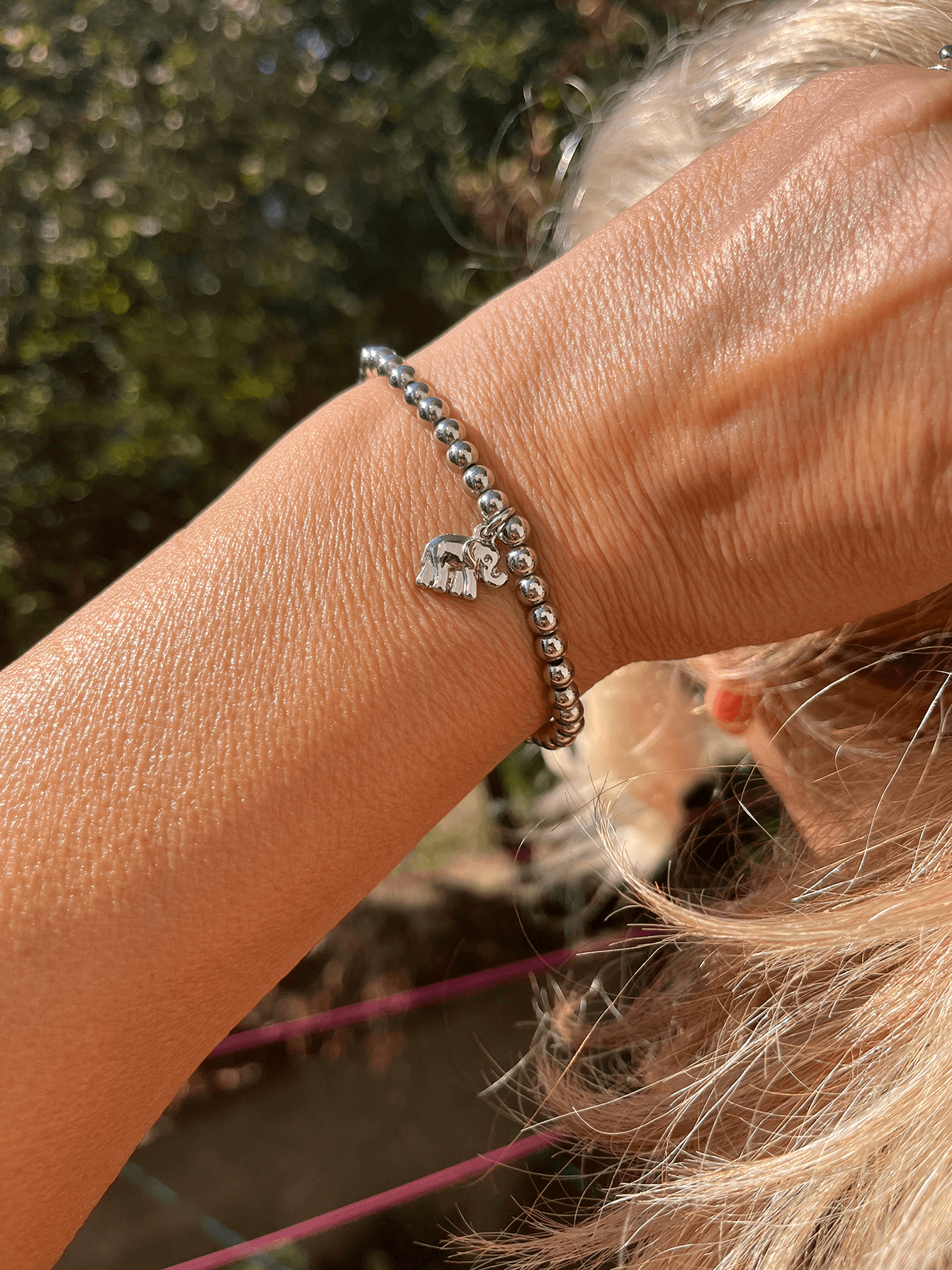 Emily Elephant Bead Elasticated Bracelet In Silver-Tone