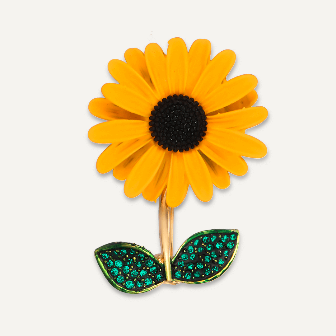 Carry the sunshine around with you with this sunflower brooch.