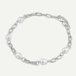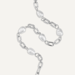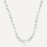 This chain-link style necklace features stunning faux pearls, perfect for a wedding or special occasion.
