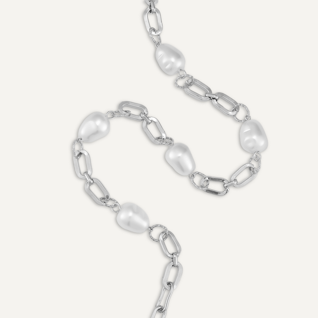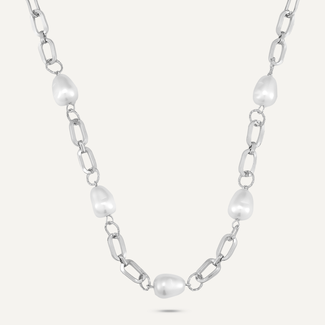 Faux Pearl Chain-Link Short Necklace In Silver-Tone