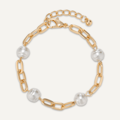Chain-Link Faux Pearl Clasp Bracelet In Gold-Tone