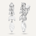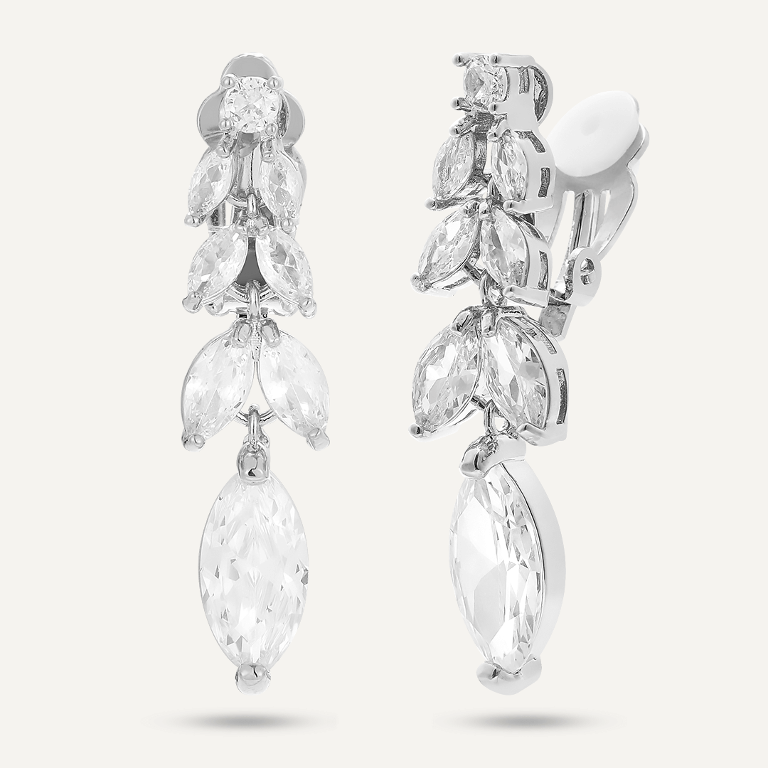 Floral Crystal Clip On Drop Earrings In Silver-Tone