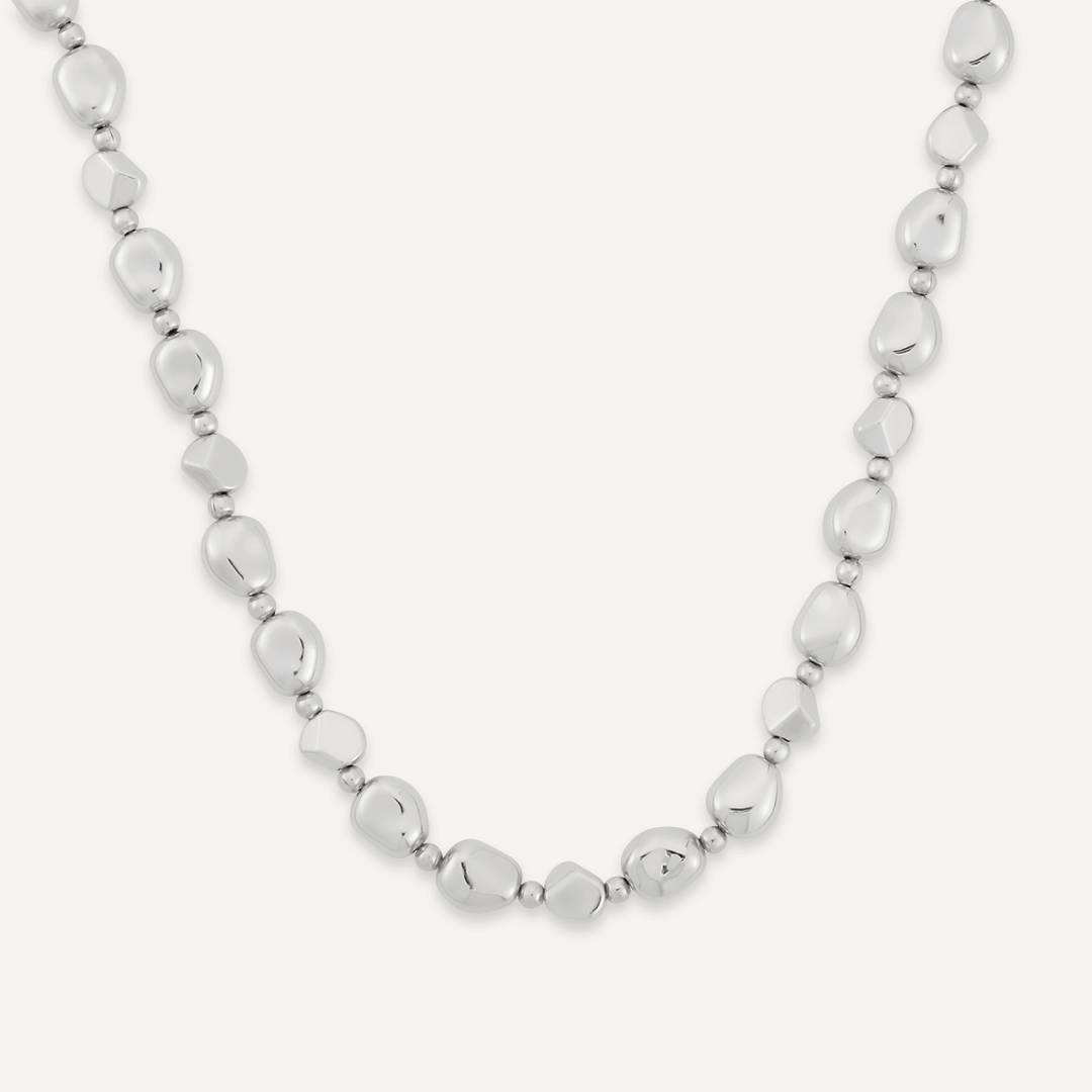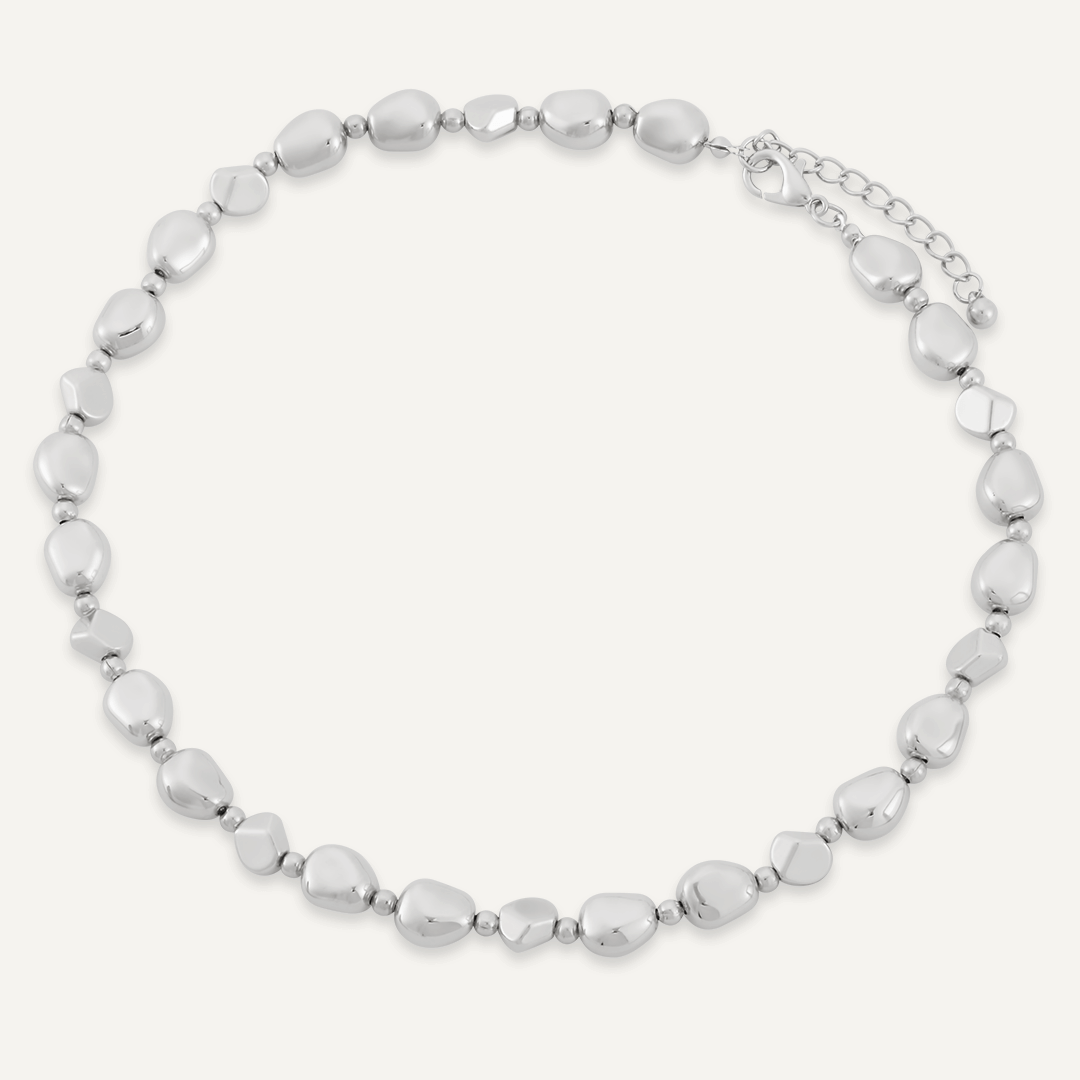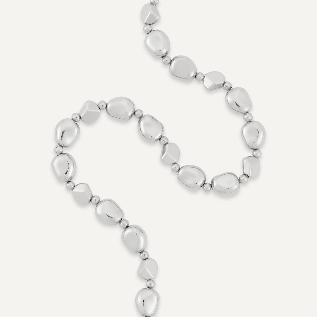 This Necklace, with a mix of rhodium plating and lobster clasp, is a tribute to modern artistry. Its geometric shapes offer a minimalist yet striking look, ideal for enhancing any outfit with a touch of sophistication.