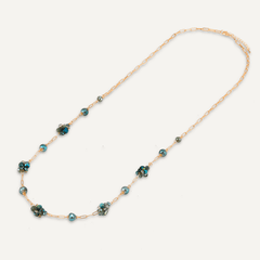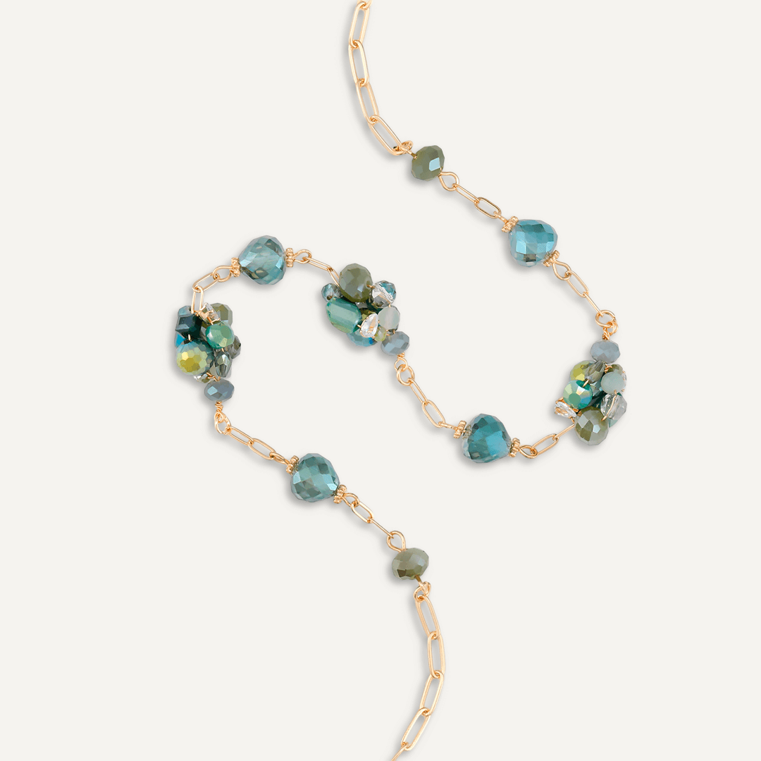Green Crystal Cluster Long Necklace In Gold-Tone