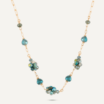 This short necklace features clusters of green crystals on a delicate gold-tone chain.