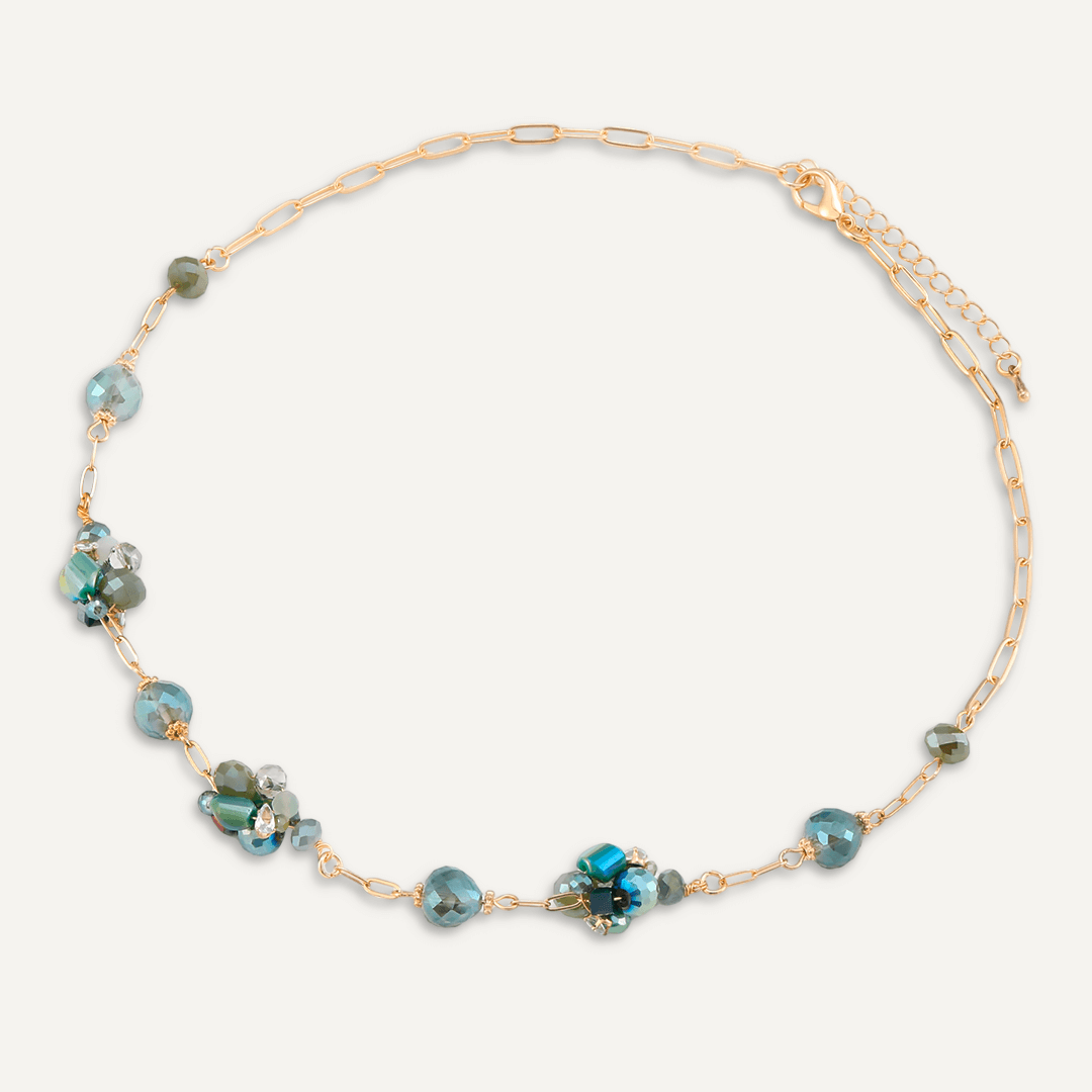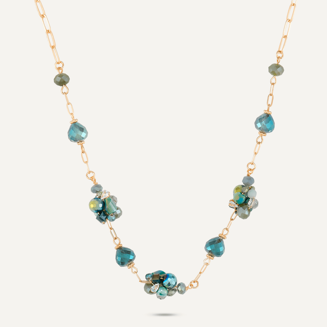 Green Crystal Cluster Short Necklace In Gold-Tone
