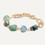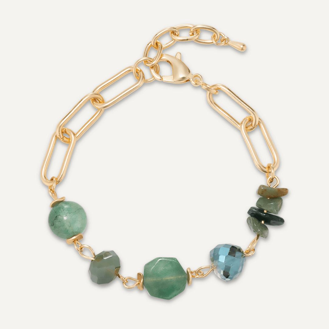 Green Semi-Precious Stone & Crystal Clasp Bracelet In Gold-Tone