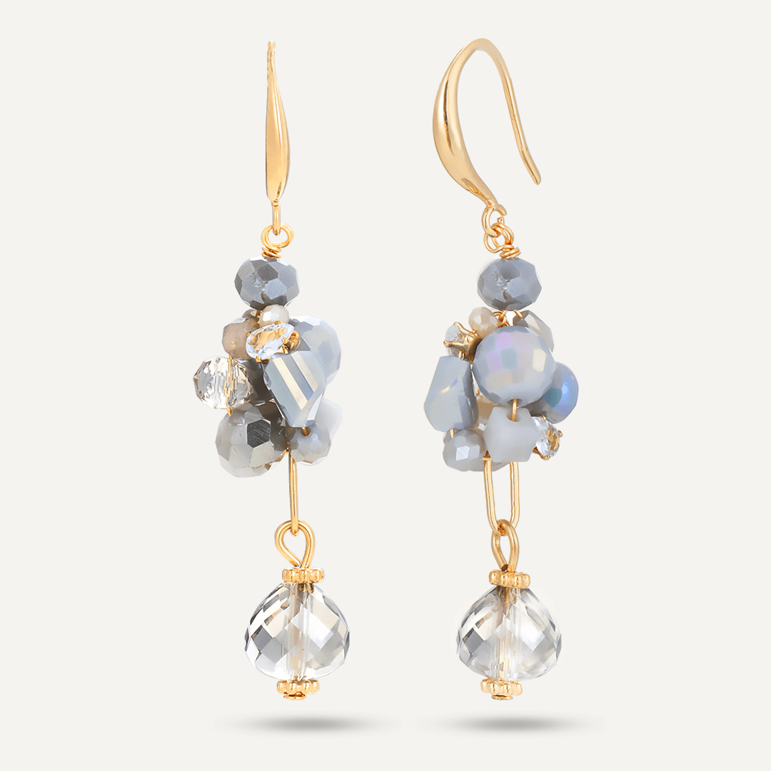 Grey Crystal Cluster Hook Earrings In Gold-Tone